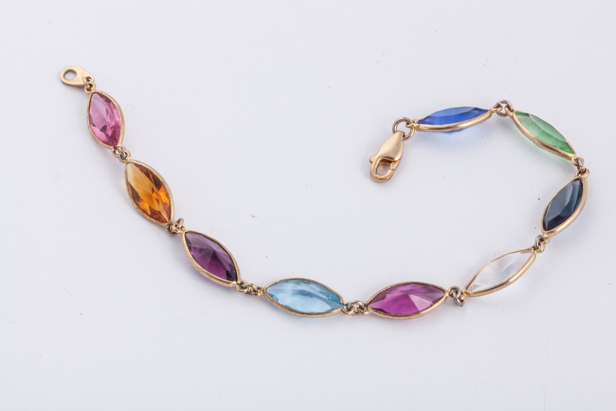 BRACELET tutti frutti en or serti de 9 pierres semi précieuses. Poids brut 7,7 g.