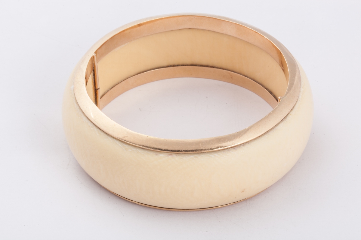 BRACELET en or jaune et matière blanche. Diam. 7 cm. Poids brut 127 g.