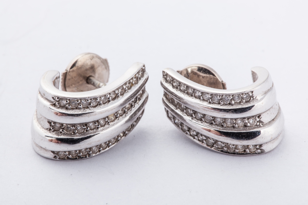 BOUCLES D'OREILLES en or blanc pavées de trois rangs de petits brillants. Création Portais à Tours, 2002. Poids brut: 5,5 g.