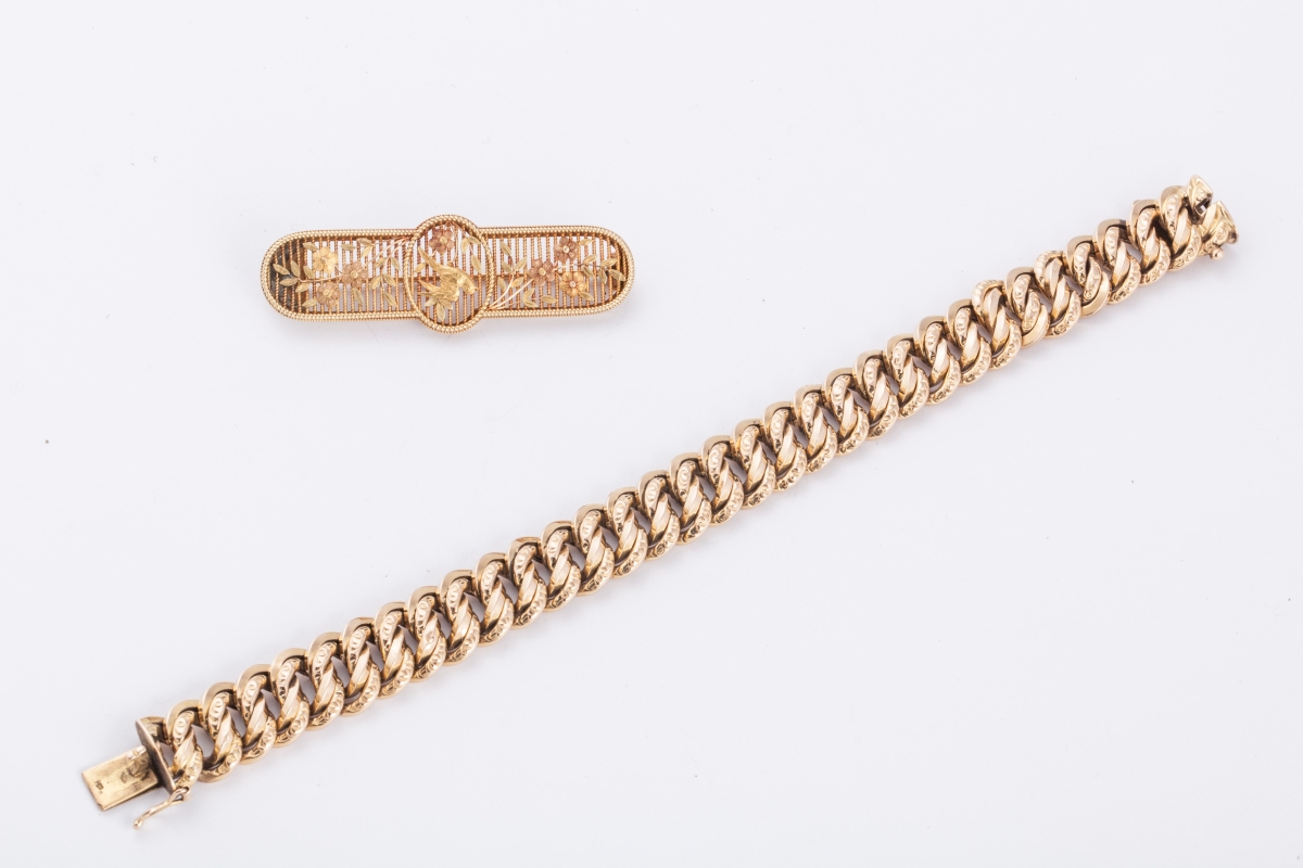 2 BIJOUX en or jaune, comprenant :- GOURMETTE souple, maille...