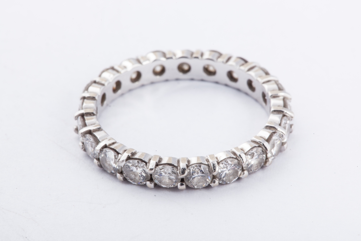 ALLIANCE américaine en or gris, sertie de 21 diamants sur griffes.