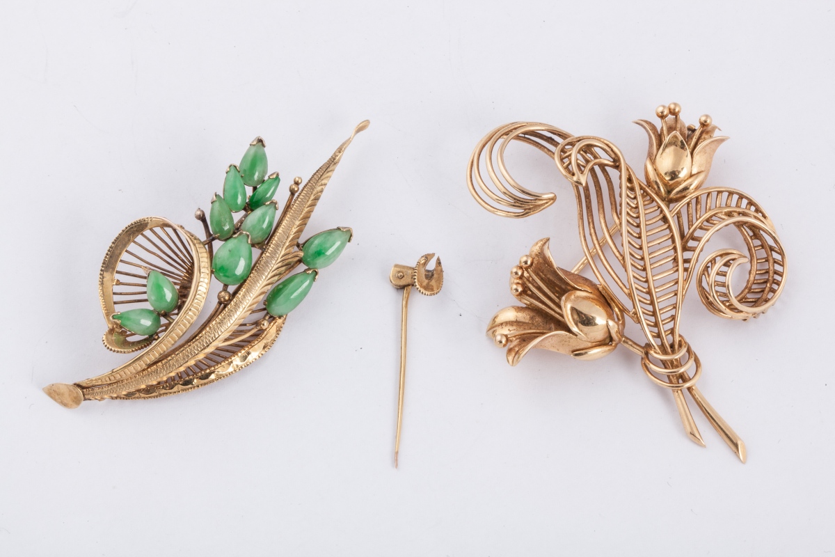 2 BROCHES en or jaune, comprenant- BROCHE BOUQUET figurant des...