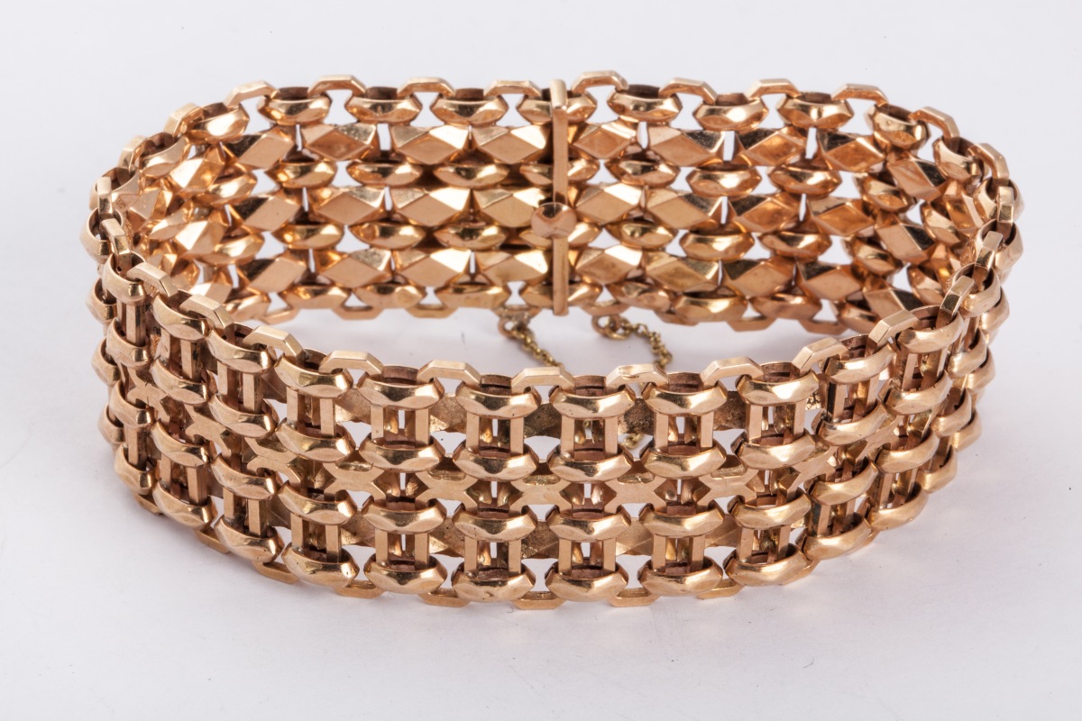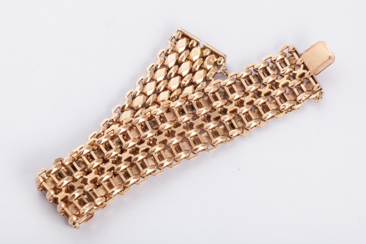 BRACELET ARTICULE en or jaune à mailles souples. Poids. 21,5...