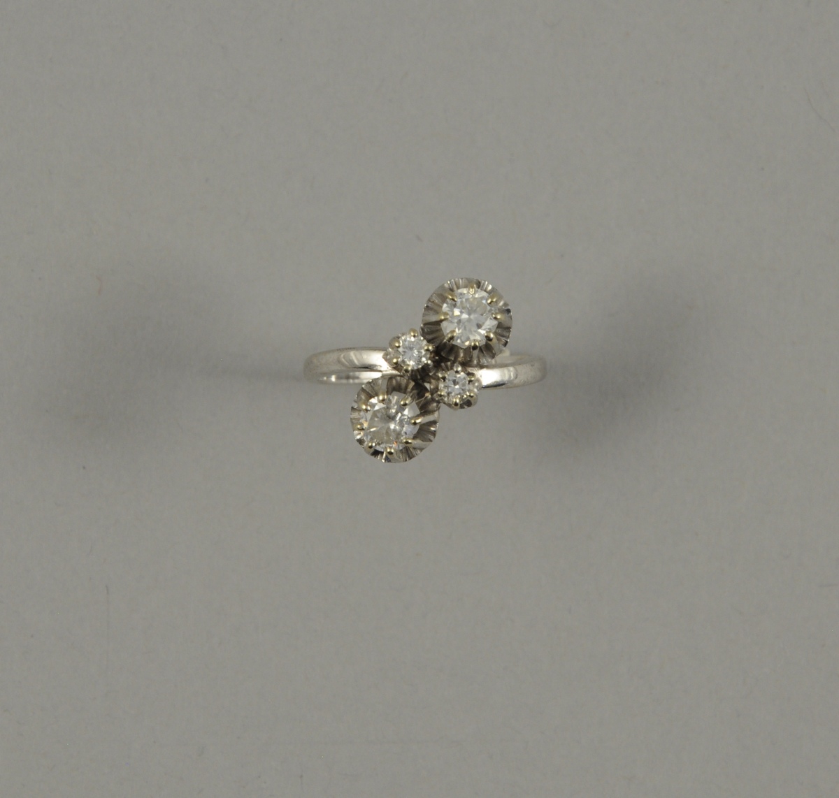 BAGUE en or blanc sertie de quatre diamants de taille brillant, ancienne.
