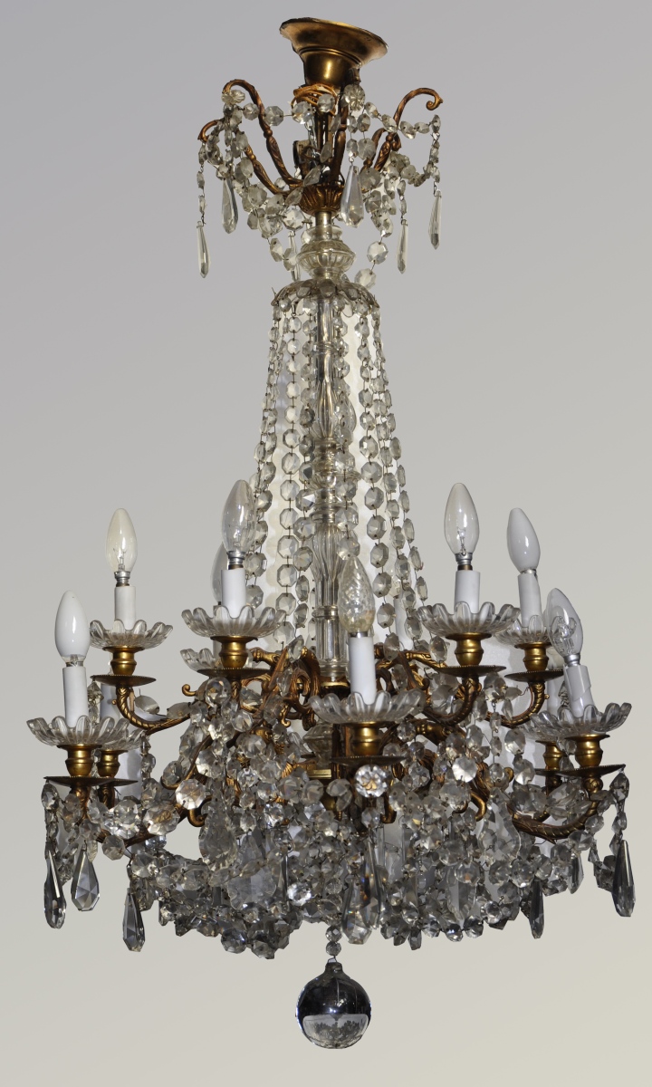 LUSTRE CORBEILLE en bronze, verre et cristal à douze lumières...
