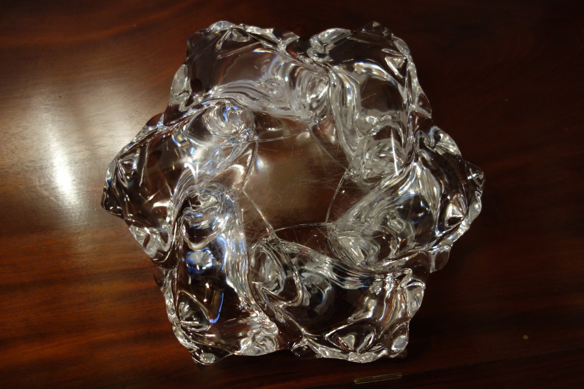 LALIQUE. COUPE HEXAGONALE en cristal formé de six conques en spirale circulaire. Signé Lalique France.