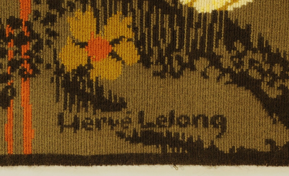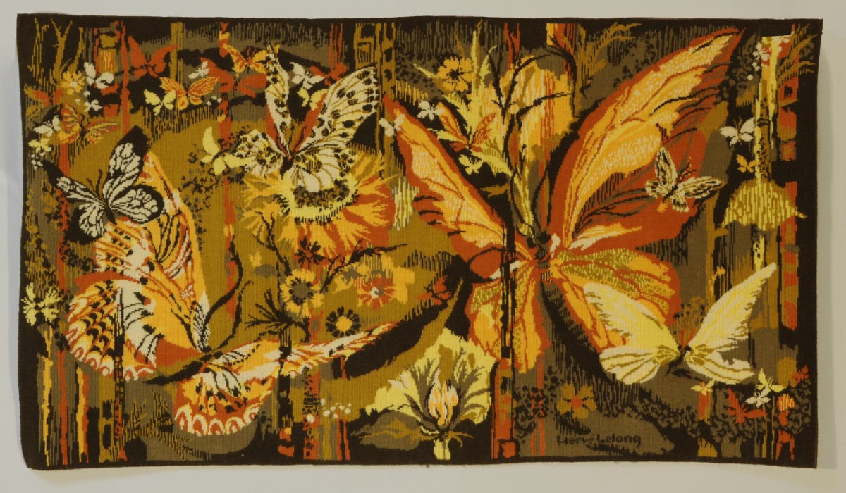 Hervé LELONG (1937), d'après"Papillonnière".Tapisserie en laine.93 x 166 cm.Facture d'achat...