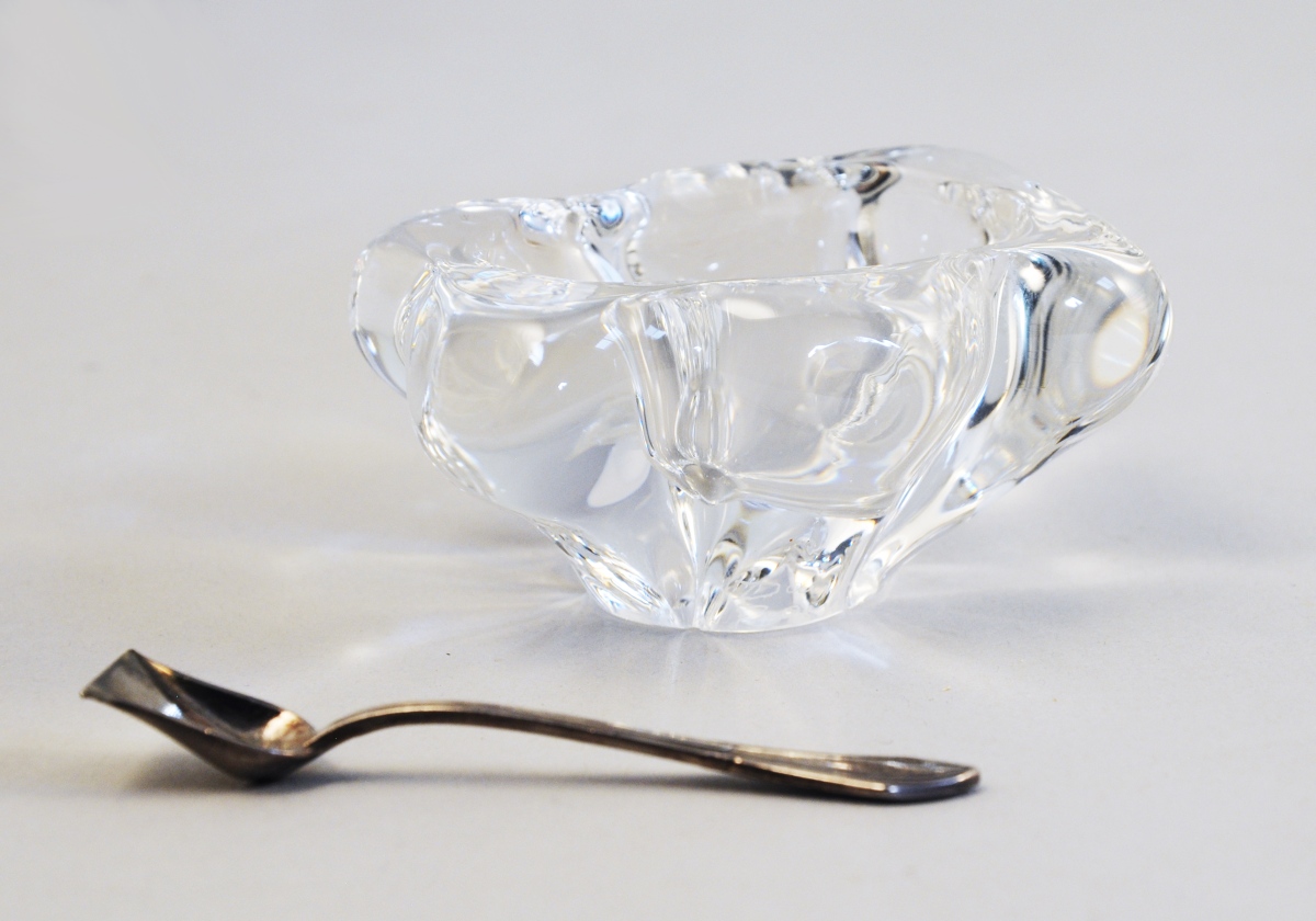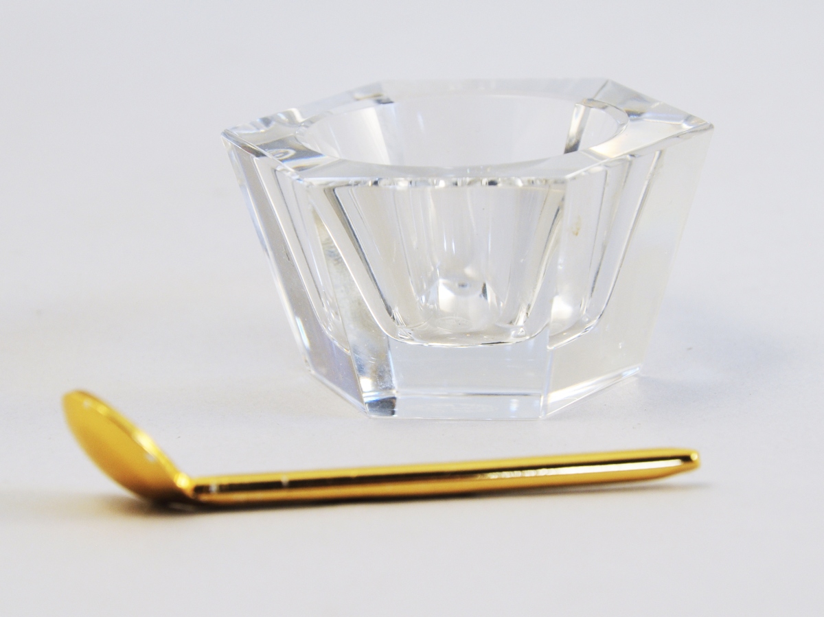 - BACCARAT: pans coupés et cuillères en métal doré.