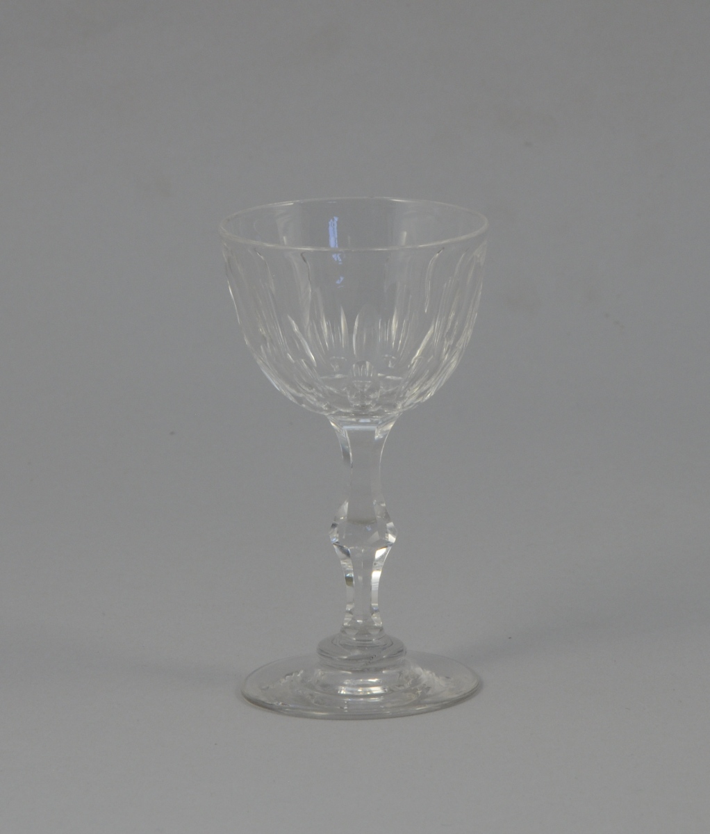 SÉRIE de 10 VERRES en cristal taillé. Six verres à vin et deux verres à porto. Pieds balustres et oves taillés.