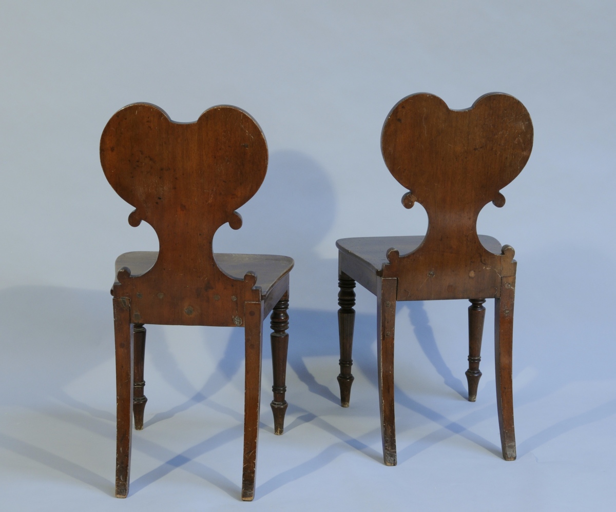PAIRE DE CHAISES en bois verni à dossier de forme rognon. Pieds antérieurs tournés, postérieurs en sabre.