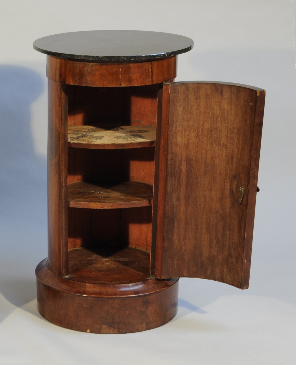 SOMNO en placage de ronce de noyer ouvrant à une porte découvrant deux étagères. Sommé d'un marbre noir.