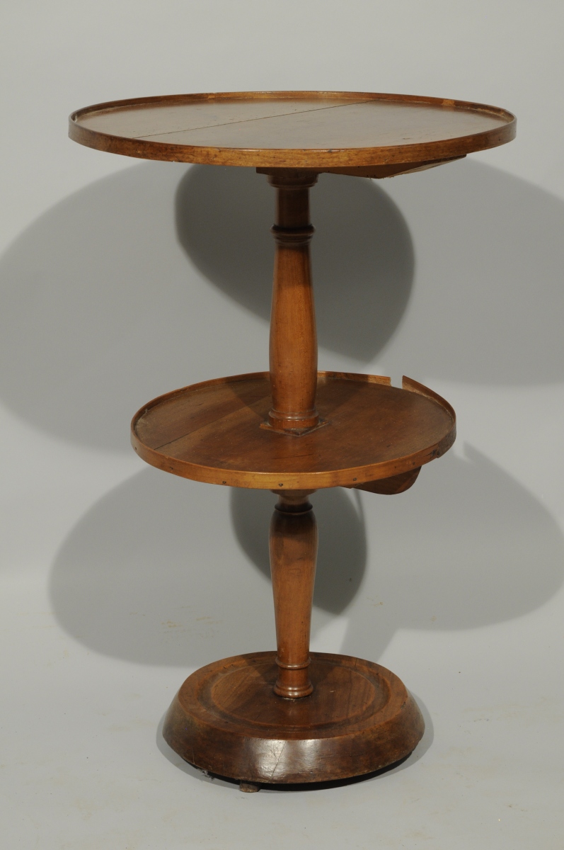 SERVITEUR MUET rond à triple gradins en acajou. Fût balustre.