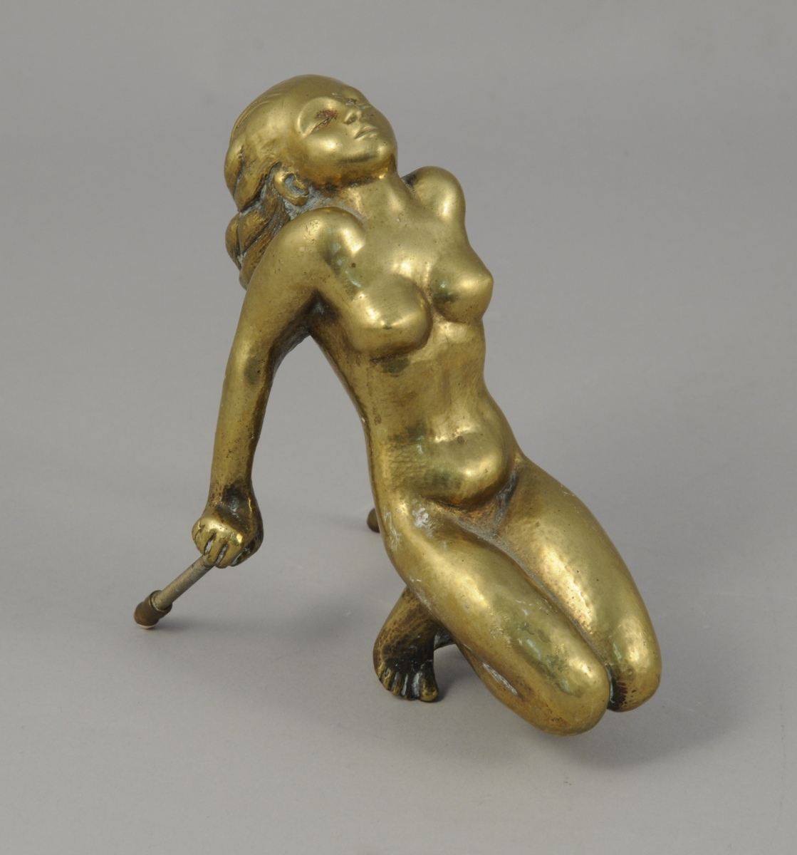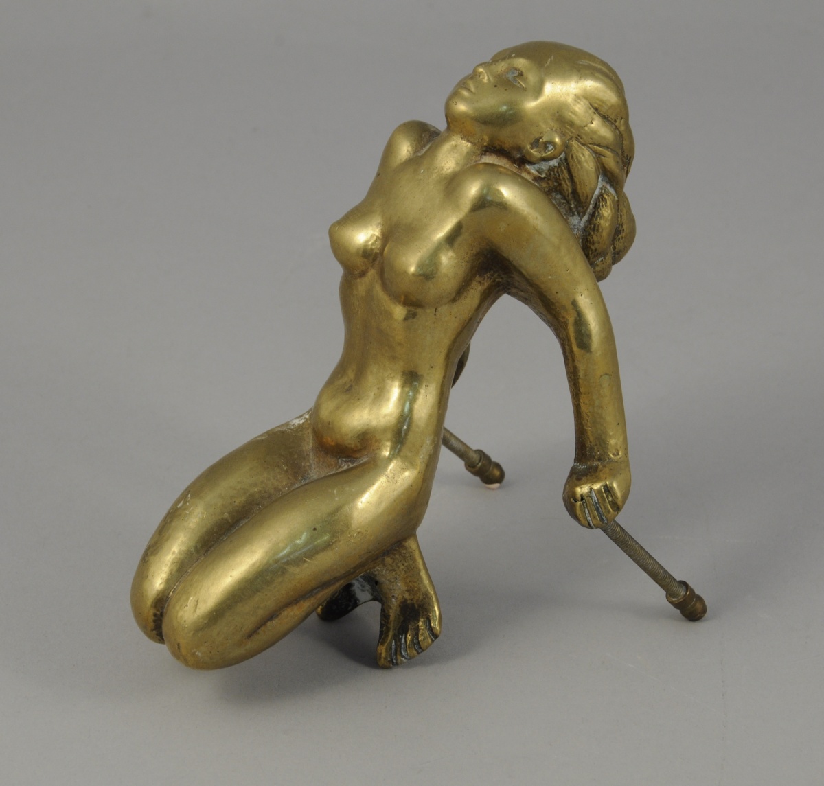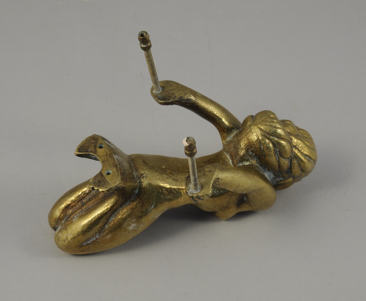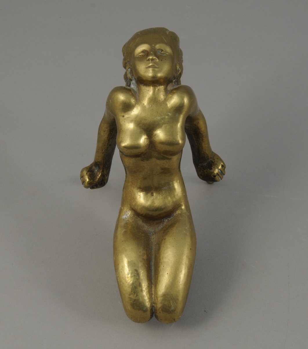 POIGNÉE DE PORTE en bronze figurant une femme nue à la façon de la proue d'un navire.