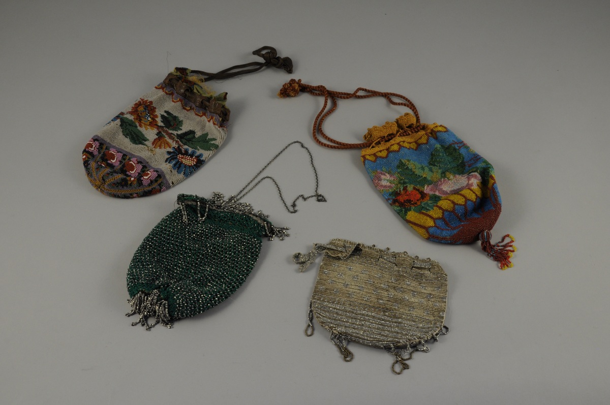 Quatre BOURSES en perles d'époque Romantique comprenant: