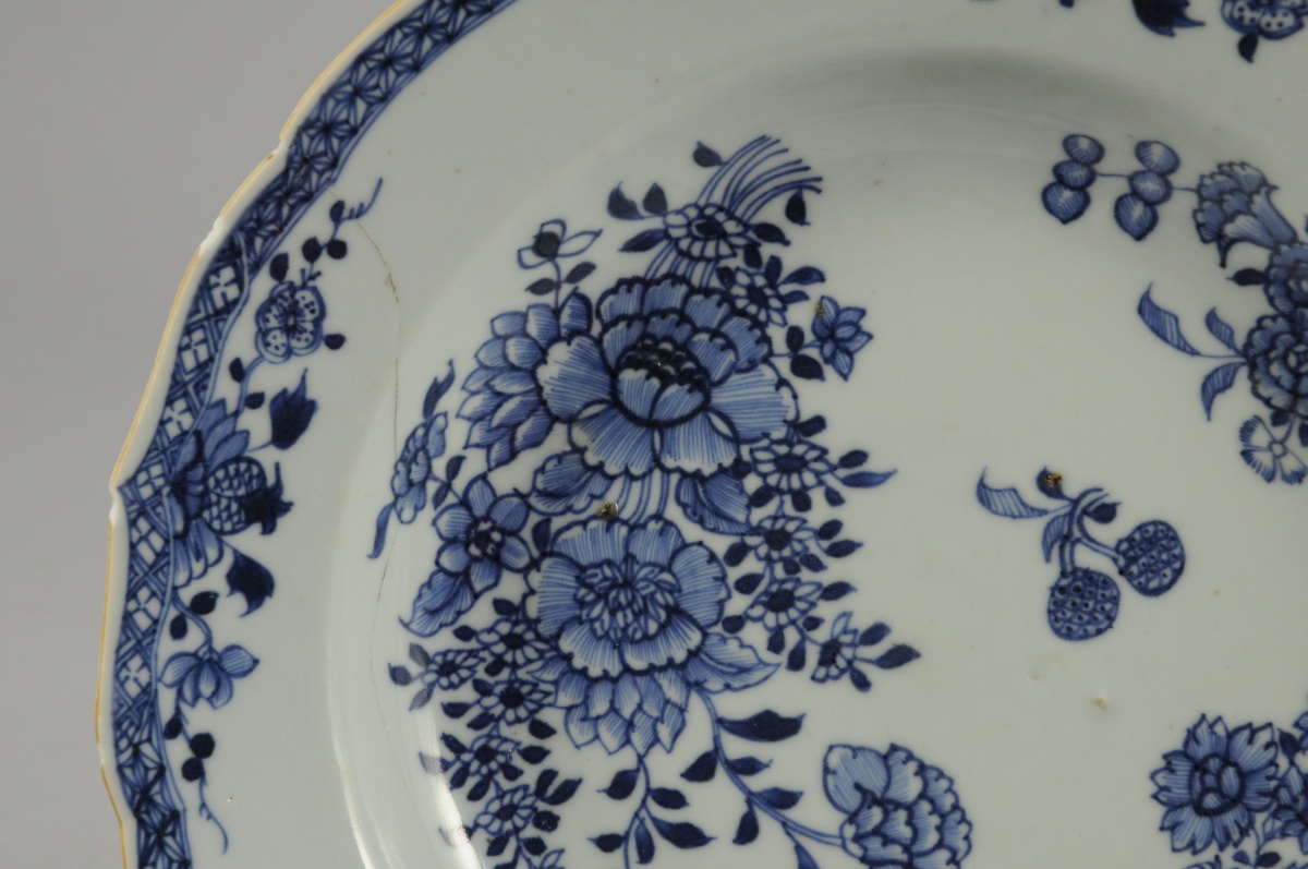 JOINT: Deux ASSIETTES creuses en porcelaine. Fleurs en camaïeu bleu. XIXè.