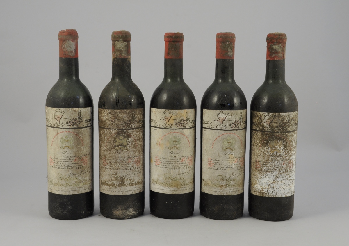 PAUILLAC - Château Mouton Rothschild - 1955 - Etiquette GEORGES BRAQUE - Lot de 5 bouteilles - 75cl