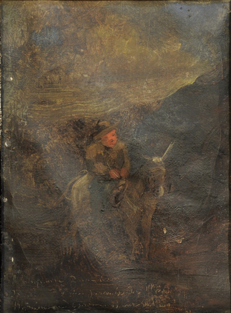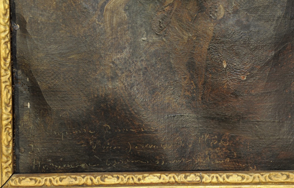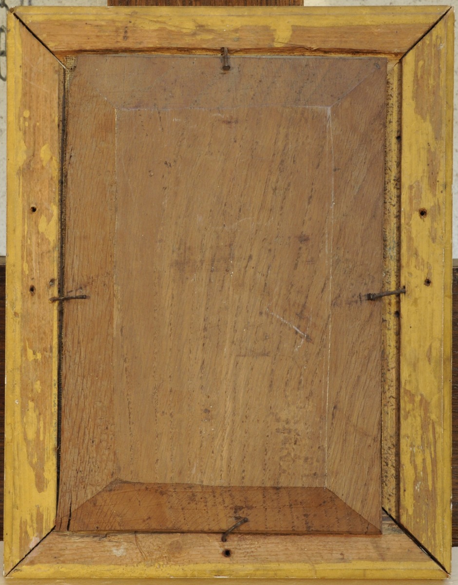 Toile légendée et signée en bas à droite, clouée sur un panneau.