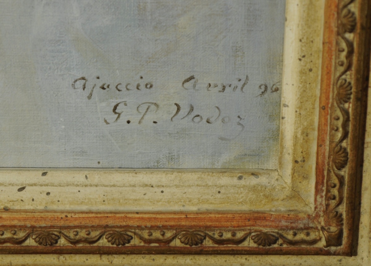 Huile sur toile (recoupée et collée sur une autre toile), signée, datée et située "Ajaccio avril 96" en bas à droite.