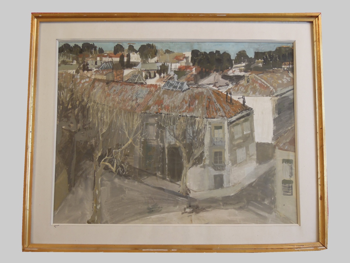Fusain et gouache sur papier, titré et attribué sur le carton au dos.