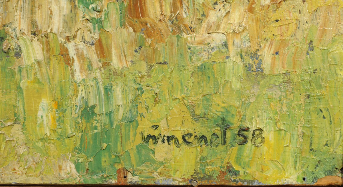 Panneau signé en bas à droite et daté 58.