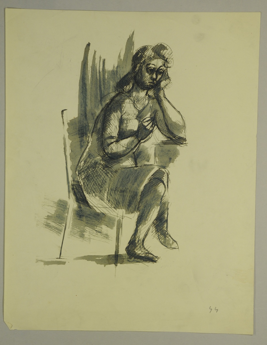 Six oeuvres sur papier comprenant une aquarelle, trois encres et lavis et deux dessins à la mine de plomb.