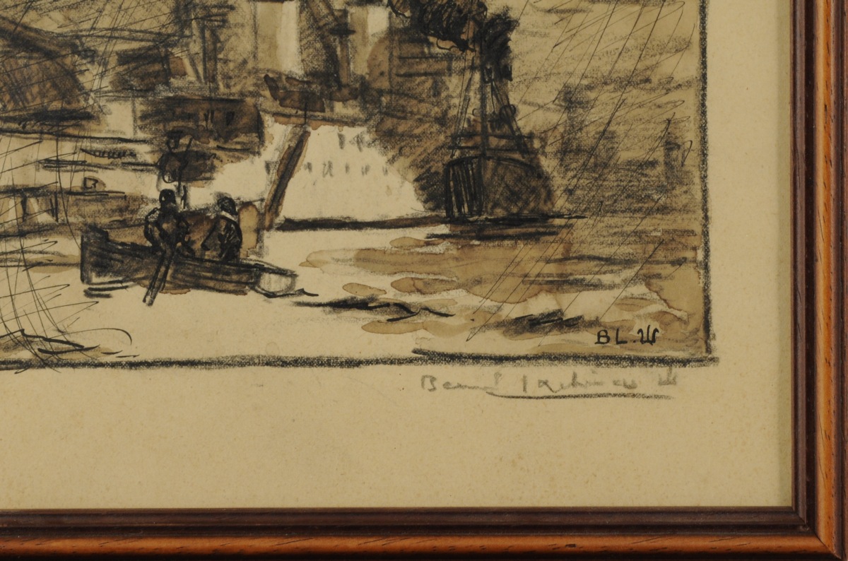 Crayon noir, encre noire et lavis d'encre brune, signé en bas à droite dans le dessin et sur le papier.