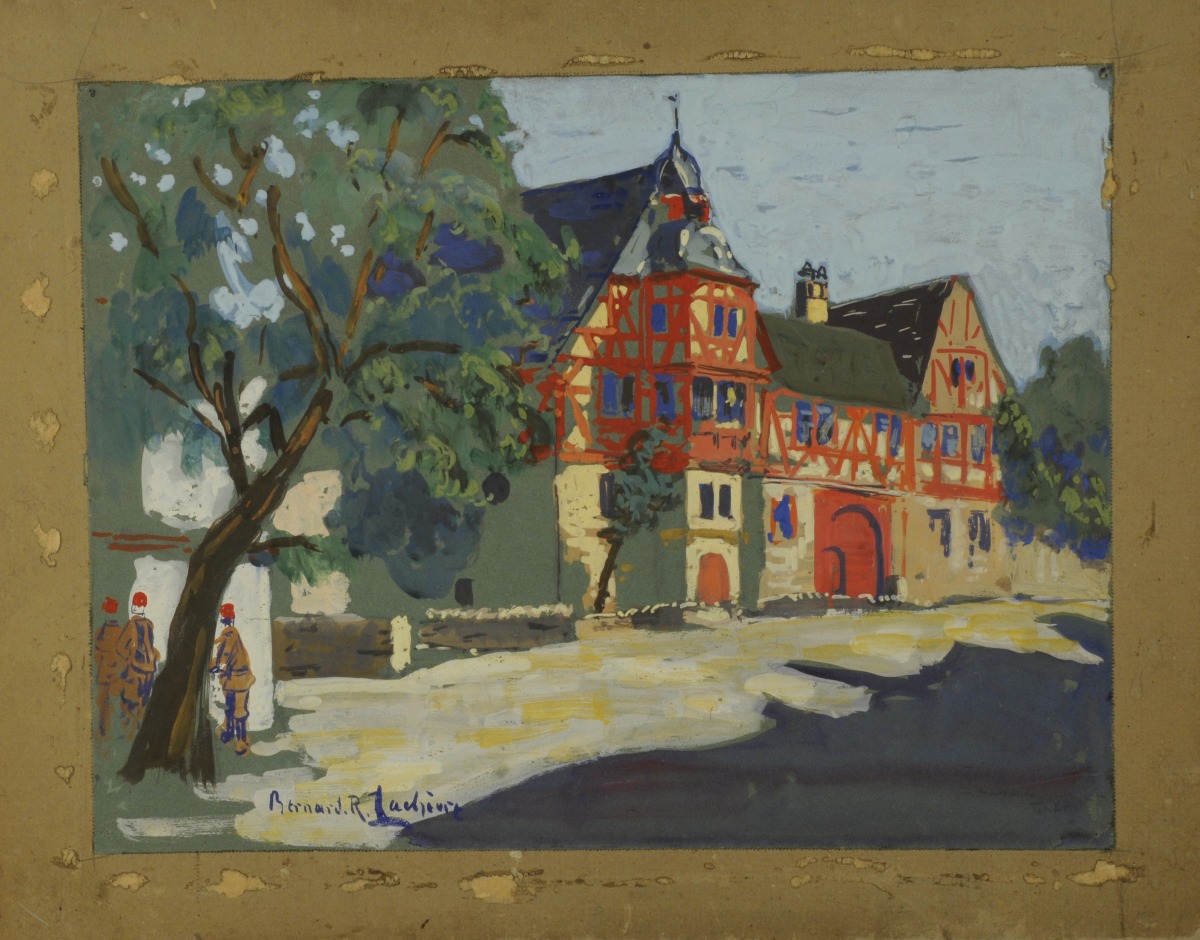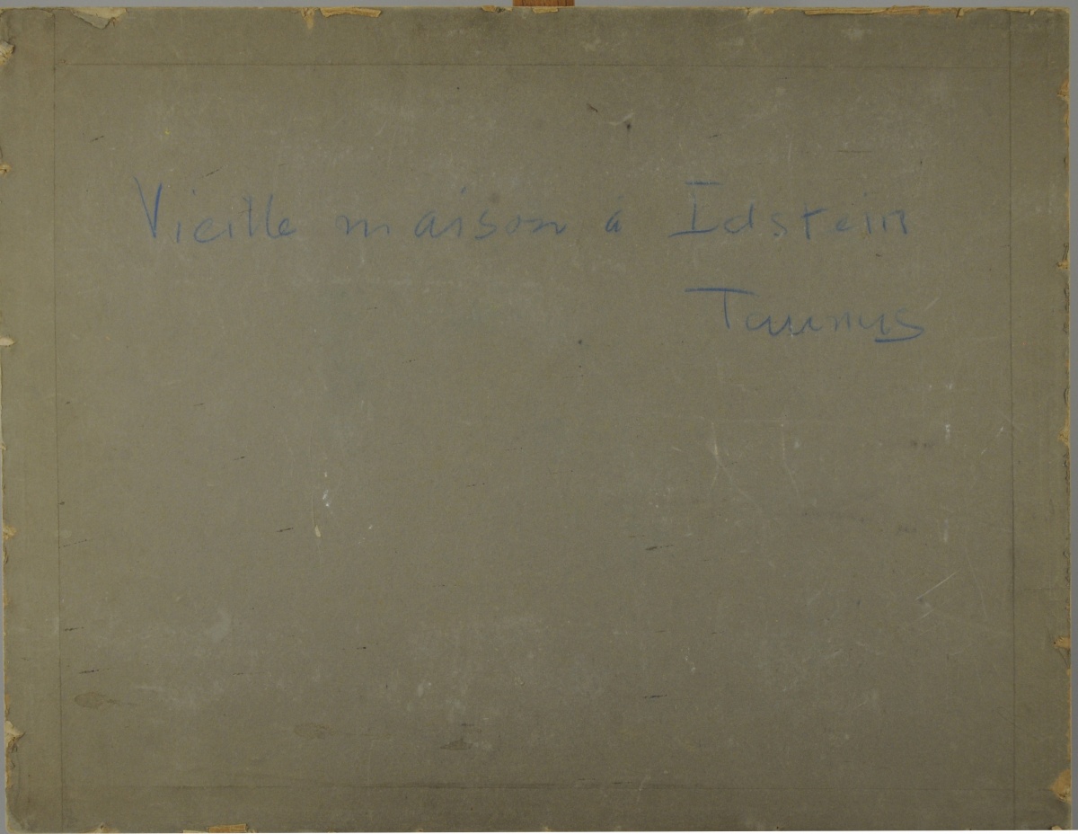 Gouache marouflée sur carton, signée en bas à gauche et titrée en bas à droite. Porte une inscription " Vieille maison à Idstein Taunus " au dos.