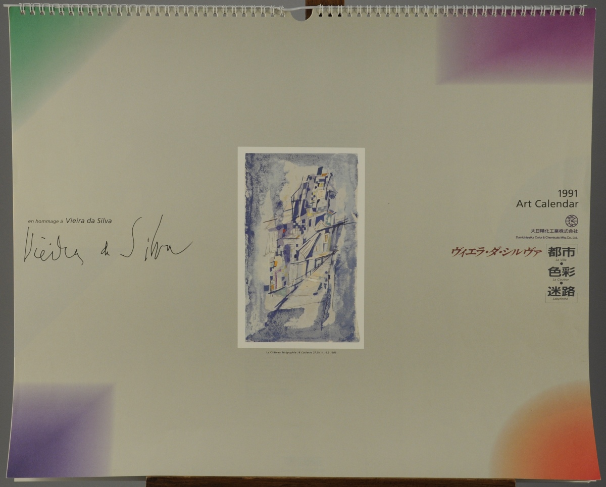 CALENDRIER de 1991: "en hommage à Vieira da Silva". Orné de six reproductions en couleurs d'oeuvres de l'artiste.