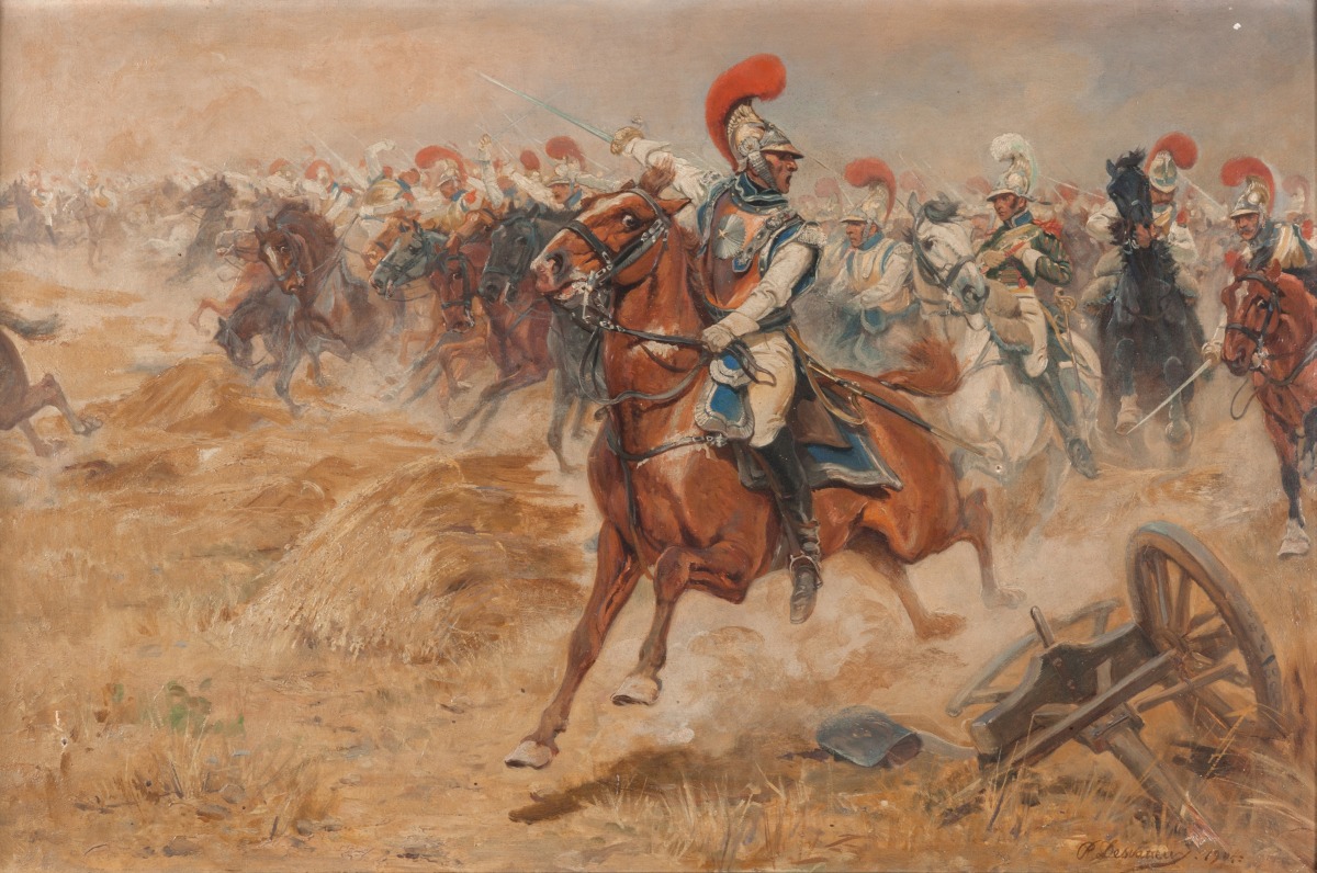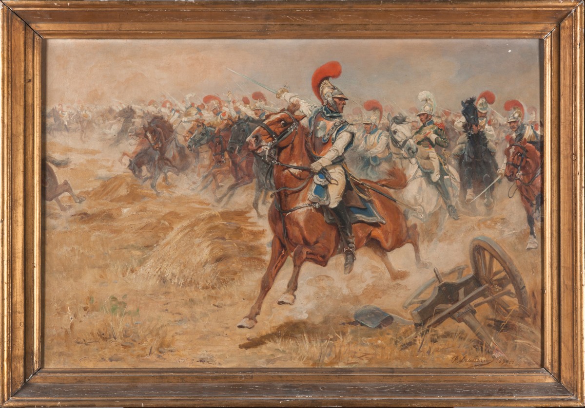 L'uniforme des cavaliers sur ce tableau correspond à celui adopté pour le corps d'élite des carabiniers en 1809. Deux charges de carabiniers sont entrées dans la légende impériale: lors de la bataille de la Moskova et celle de Winkowo (1812). Desvarreux produit de nombreuses peintures historiques, où il glorifie l'engagement des troupes françaises à travers l'Europe.
