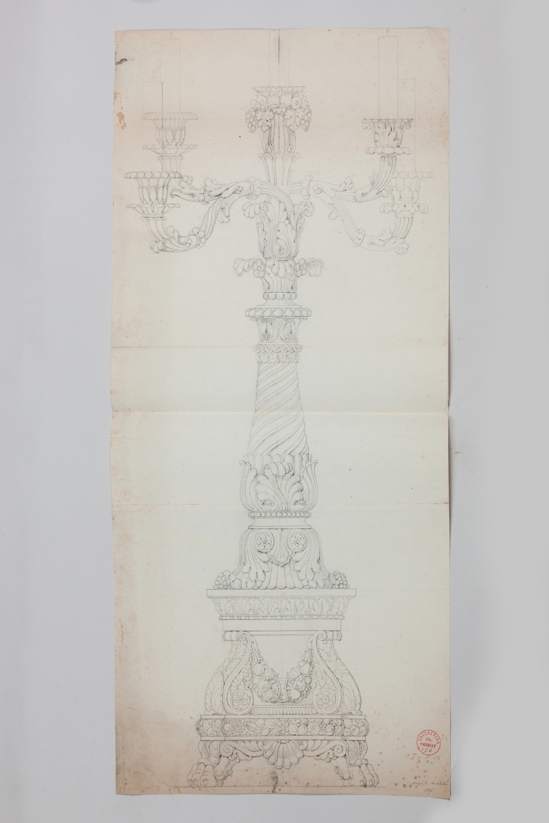 Annotation manuscrite: "projet de candélabre 1827".