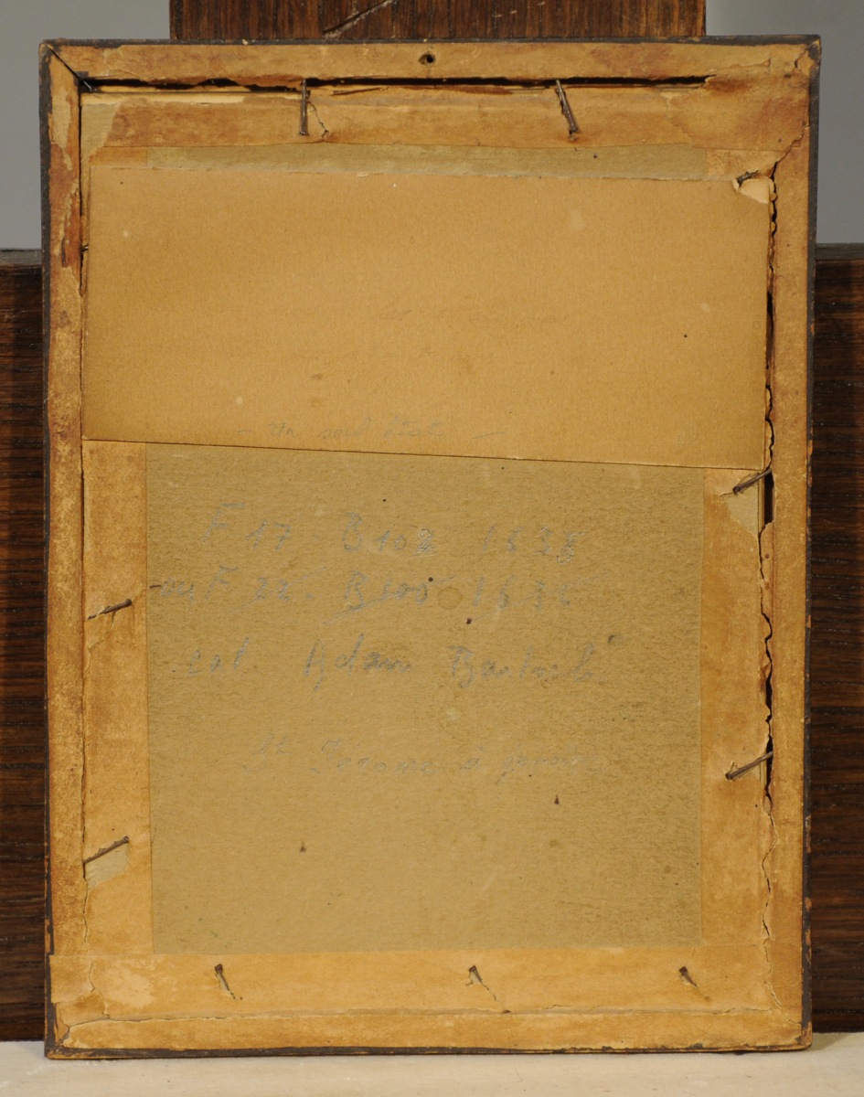 Eau-forte. Belle épreuve insolée d'un tirage légèrement tardif. Bord supérieur collé, et reste de montage au verso. Rousseurs, quelques piqures, petites traces de plis, trace brunie sur le bord gauche, filet de marge. Cadre.