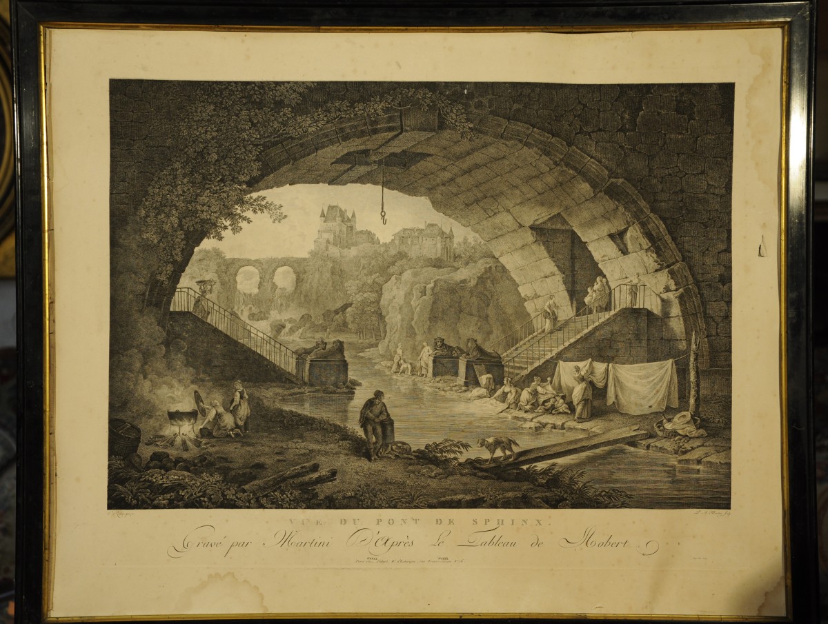 "Vue du Pont de Sphinx", d'après Hubert Robert. 59 x 74 cm.