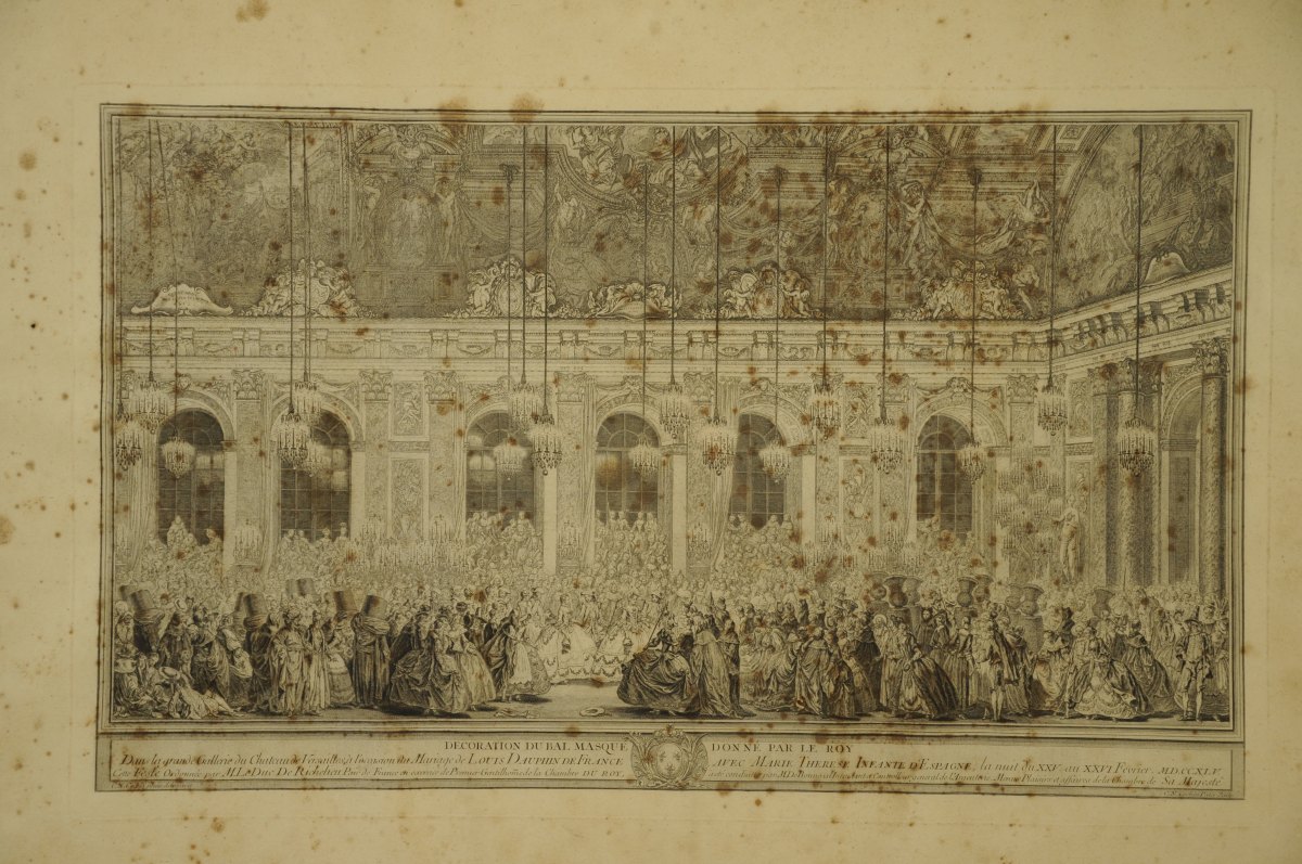 "Décoration du Bal Masqué donné par le Roy dans la Grande Galerie du Château de Versailles à l'occasion du mariage de Louis Dauphin de France avec Marie-Thérèse Infante d'Espagne la nuit du XXV au XXVI février MDCCXLV", 67 x 96,5 cm.