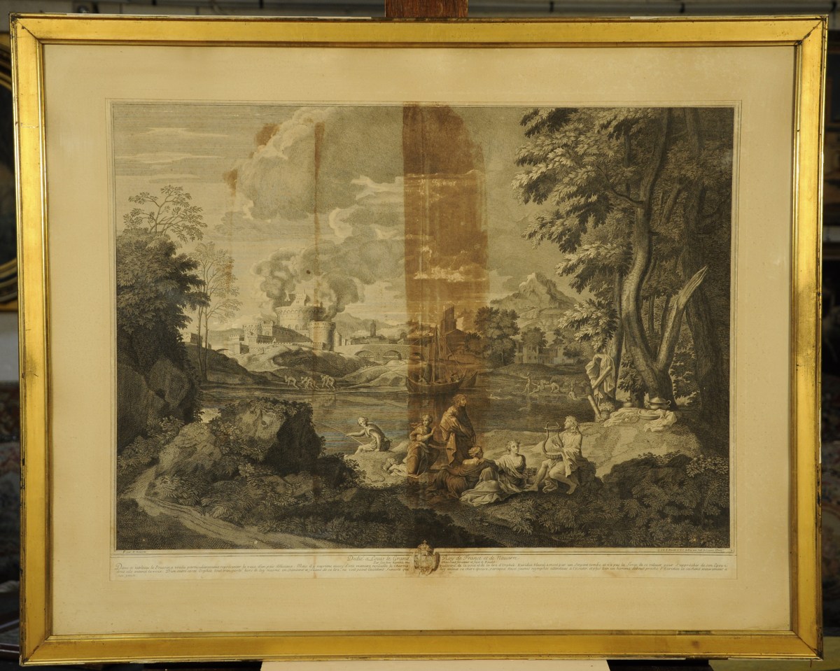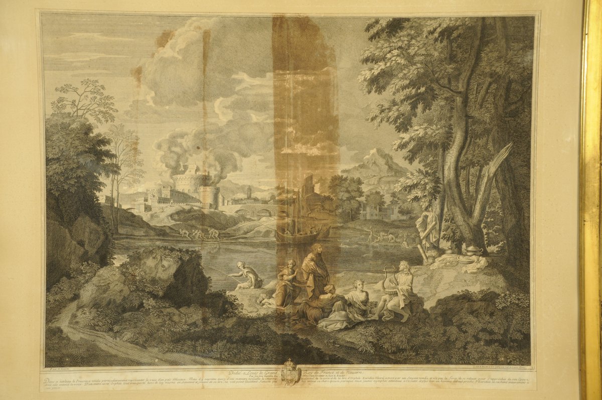 PAIRE de gravures: "Paysage avec Polyphème" et "Orphée et Eurydice" d'après Nicolas Poussin. 57 x 75 cm.