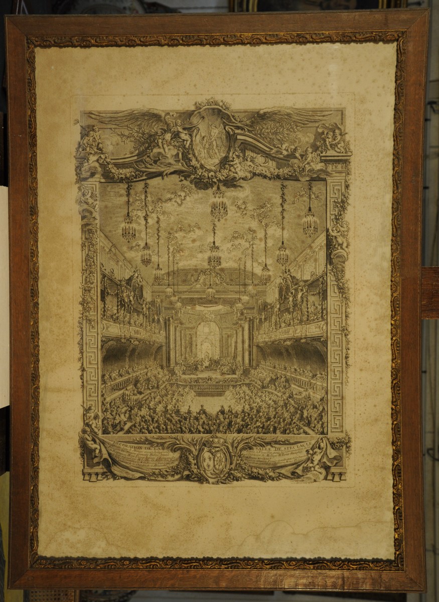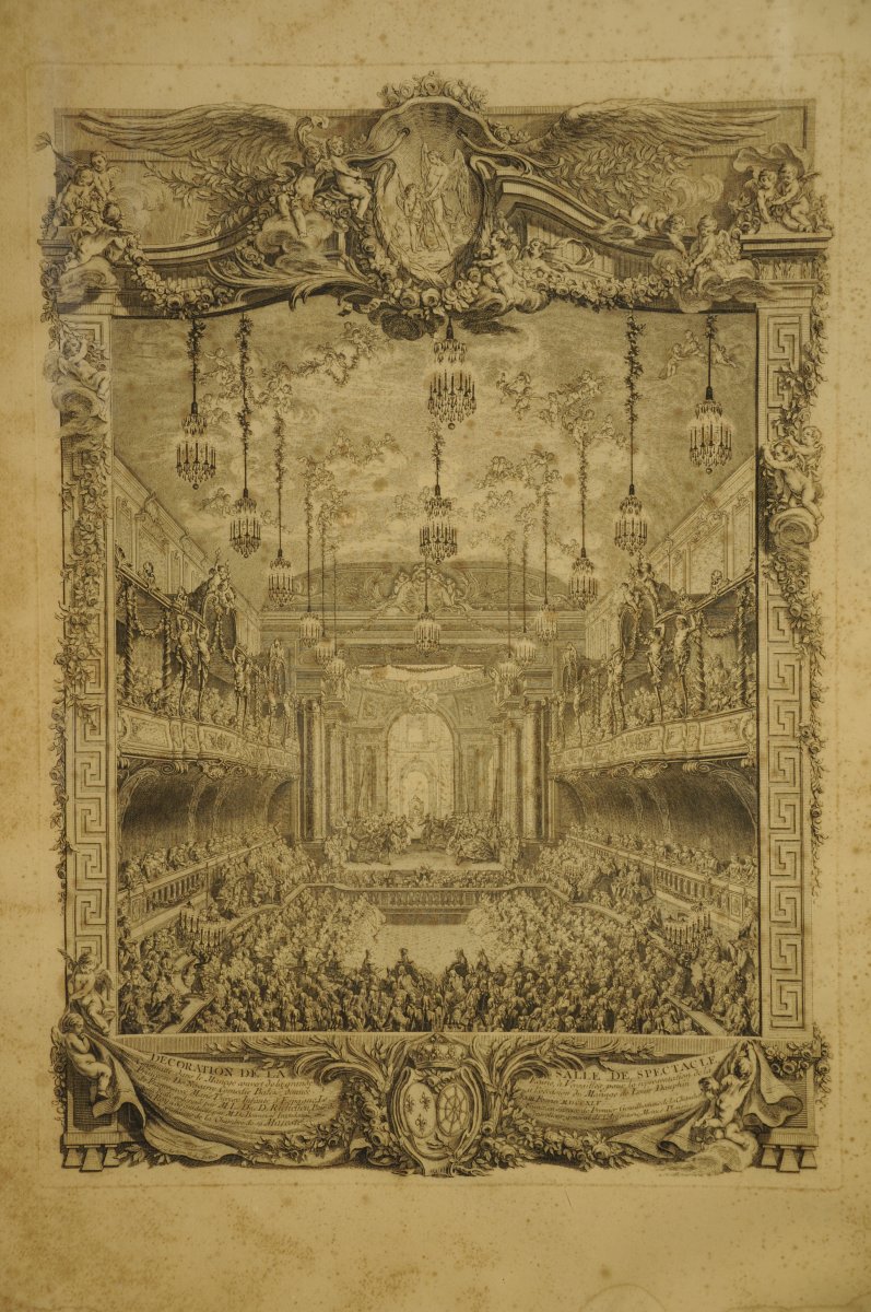 "Décoration de la salle de spectacle (...) à Versailles pour la représentation (...) donnée à l'occasion du Mariage de Louis Dauphin de France avec Marie-Thérèse Infante d'Espagne, Le XXIII Février MDCCXLV", 96,5 x 67 cm.