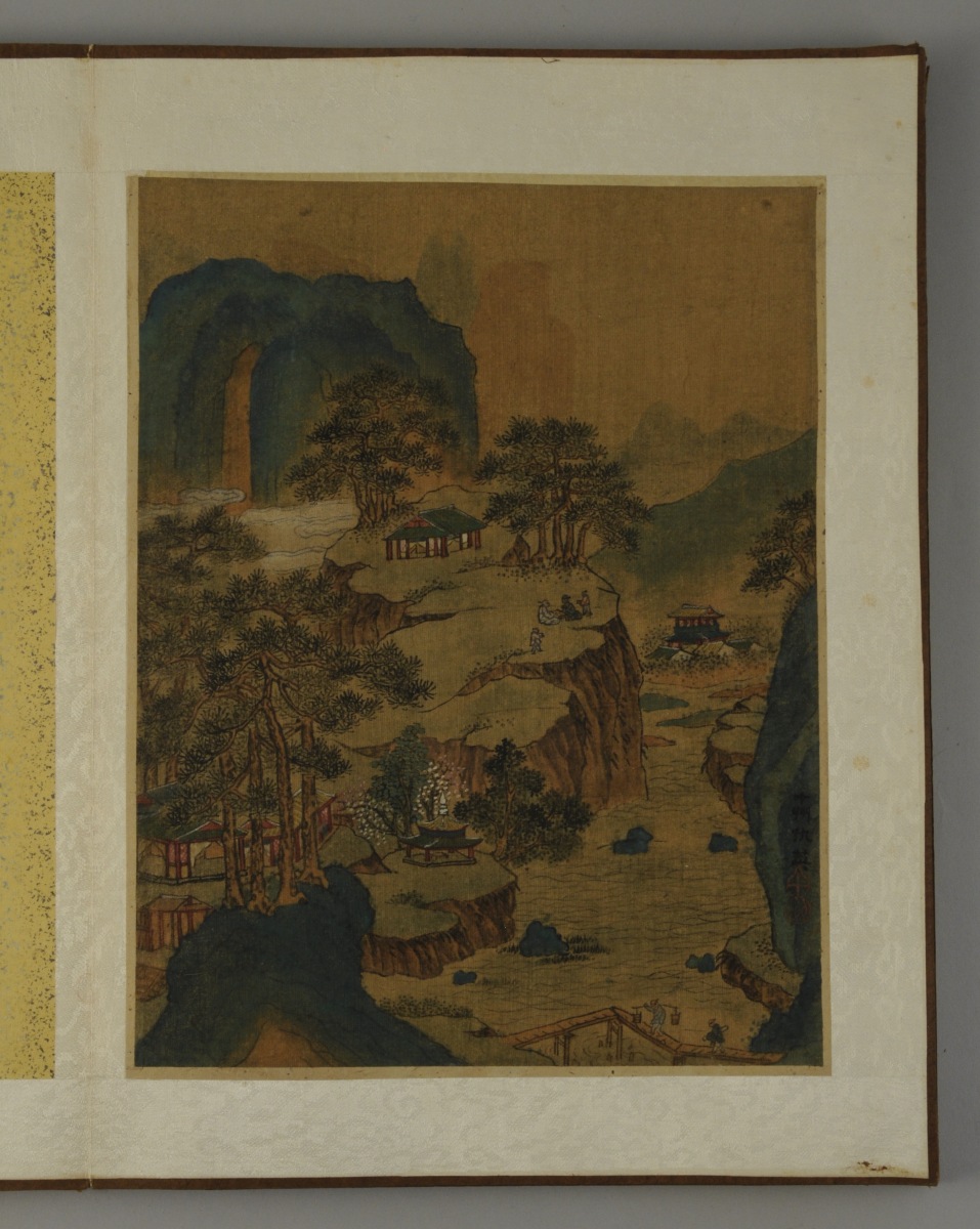 Ensemble comprenant TROIS ALBUMS, l'un de douze encres sur soie représentant des paysages avec signature apocryphe de Qiu Ying, l'un de douze encres polychromes sur soie, le jeu des nuages et de la pluie, l'un de douze encres sur soie représentant des oiseaux et fleurs.