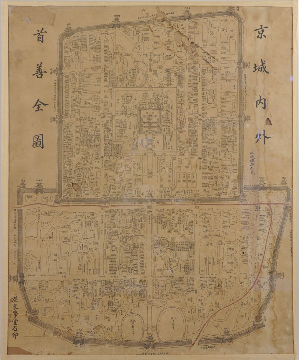 CARTE représentant la ville de Pékin.60,5 x 49 cm. (trous,...