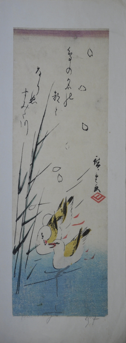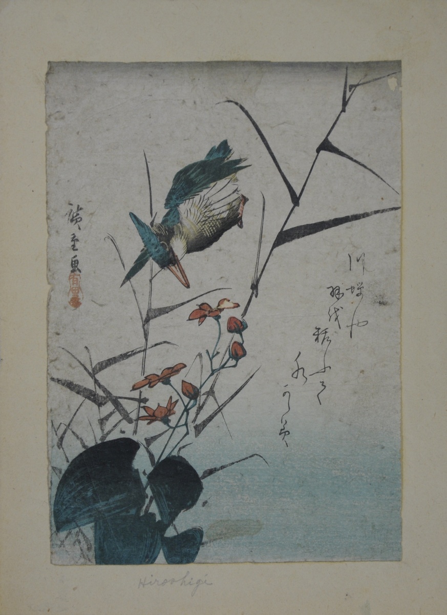 Ensemble comprenant un koban tate-e représentant un martin pêcheur et un chuban yoko-e de la série du Tokaido et deux hosoban tate-e.
