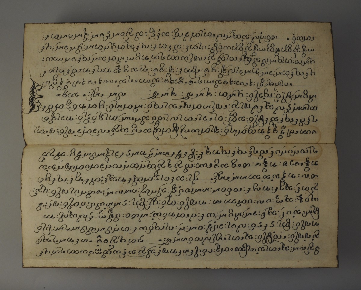 OUVRAGE, les plats en cuirs estampés et dorés à décor de volutes. Les tranches dorées. Le texte manuscrit à l'encre noire sur papier épais.