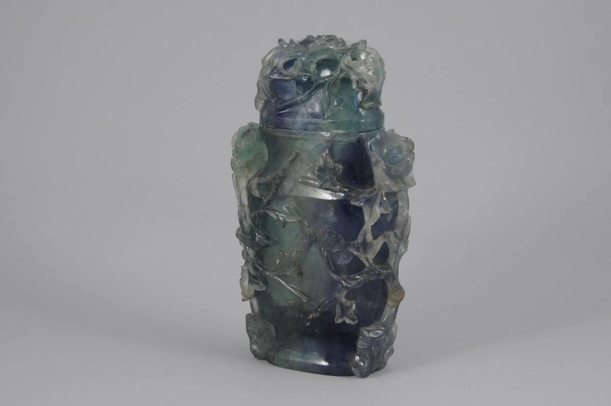 BRÛLE-PARFUM couvert en fluorine (?) sculpté de fleurs et feuillages...