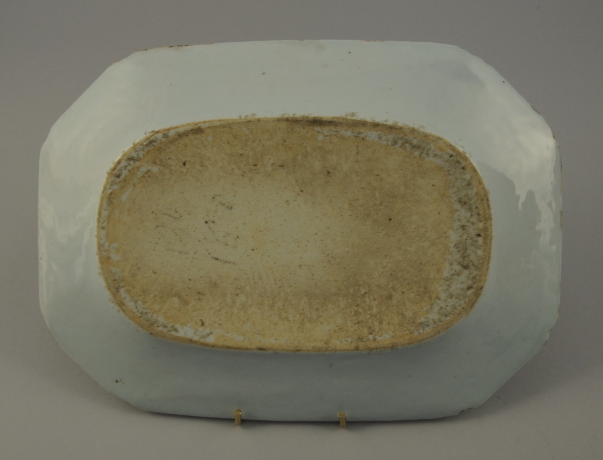 LOT DE DEUX PIÈCES en porcelaine :-PLAT octogonal à décor...