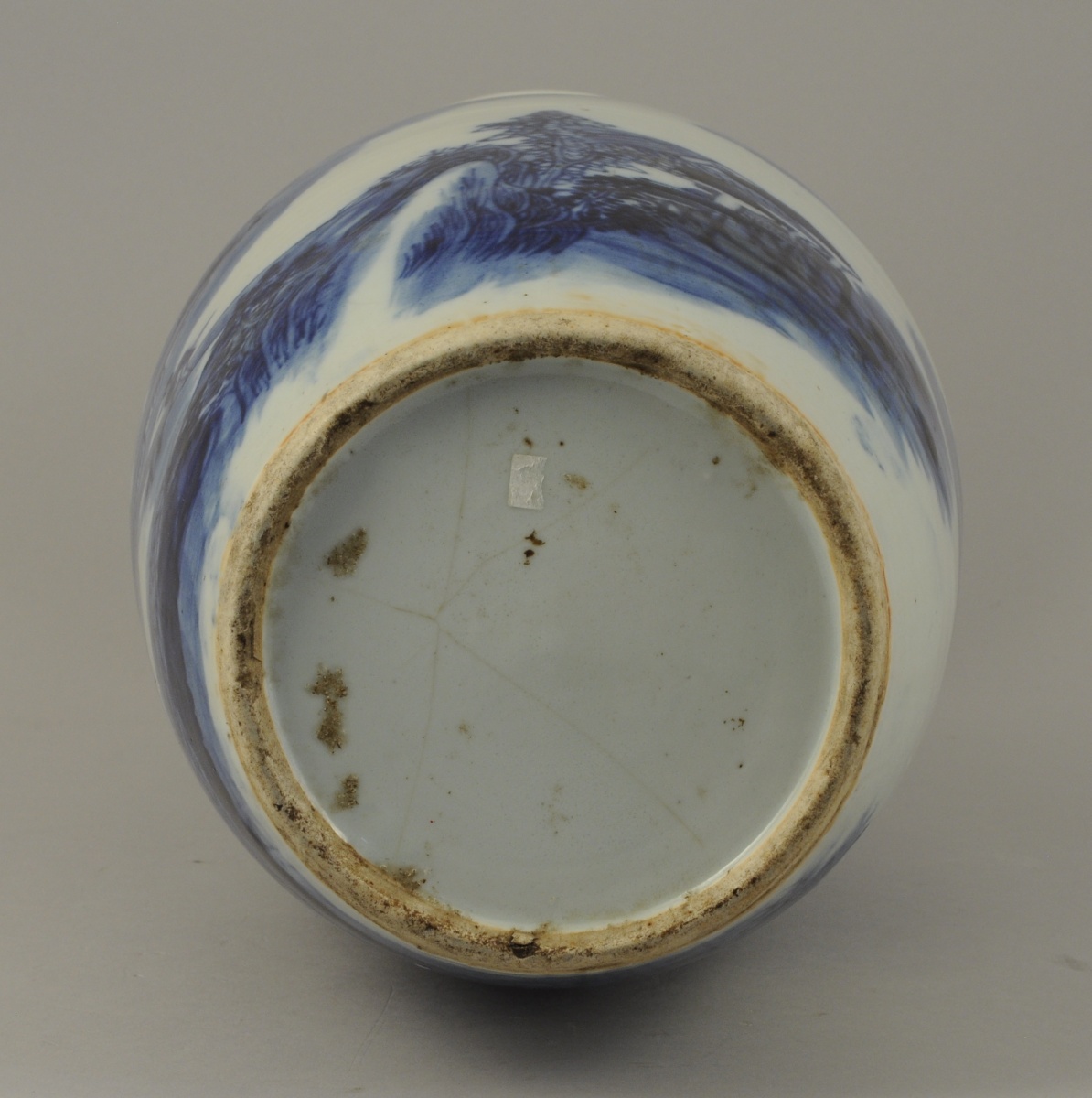 VASE en porcelaine. Décor de scènes lacustres en camaïeu bleu.Chine....