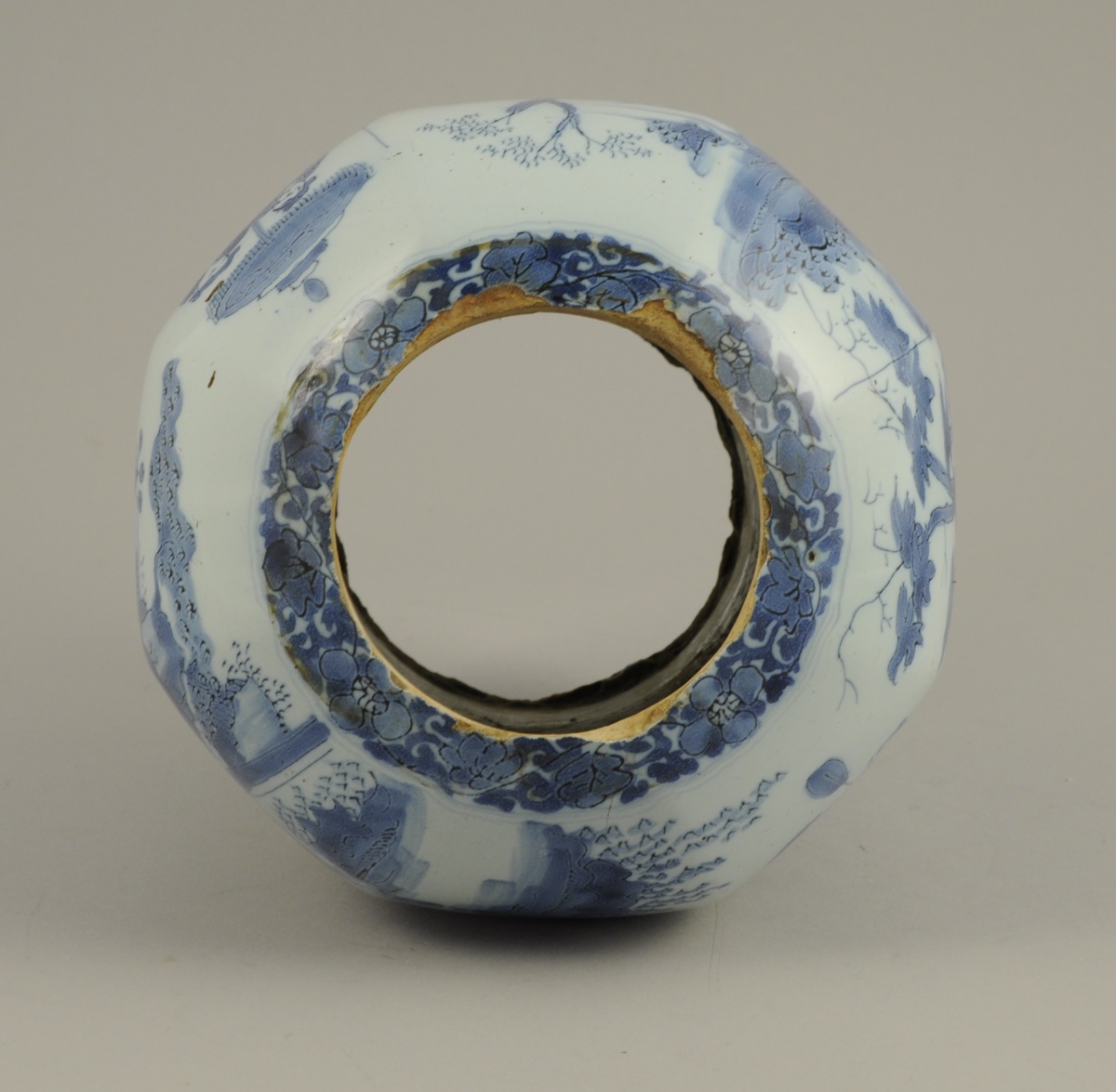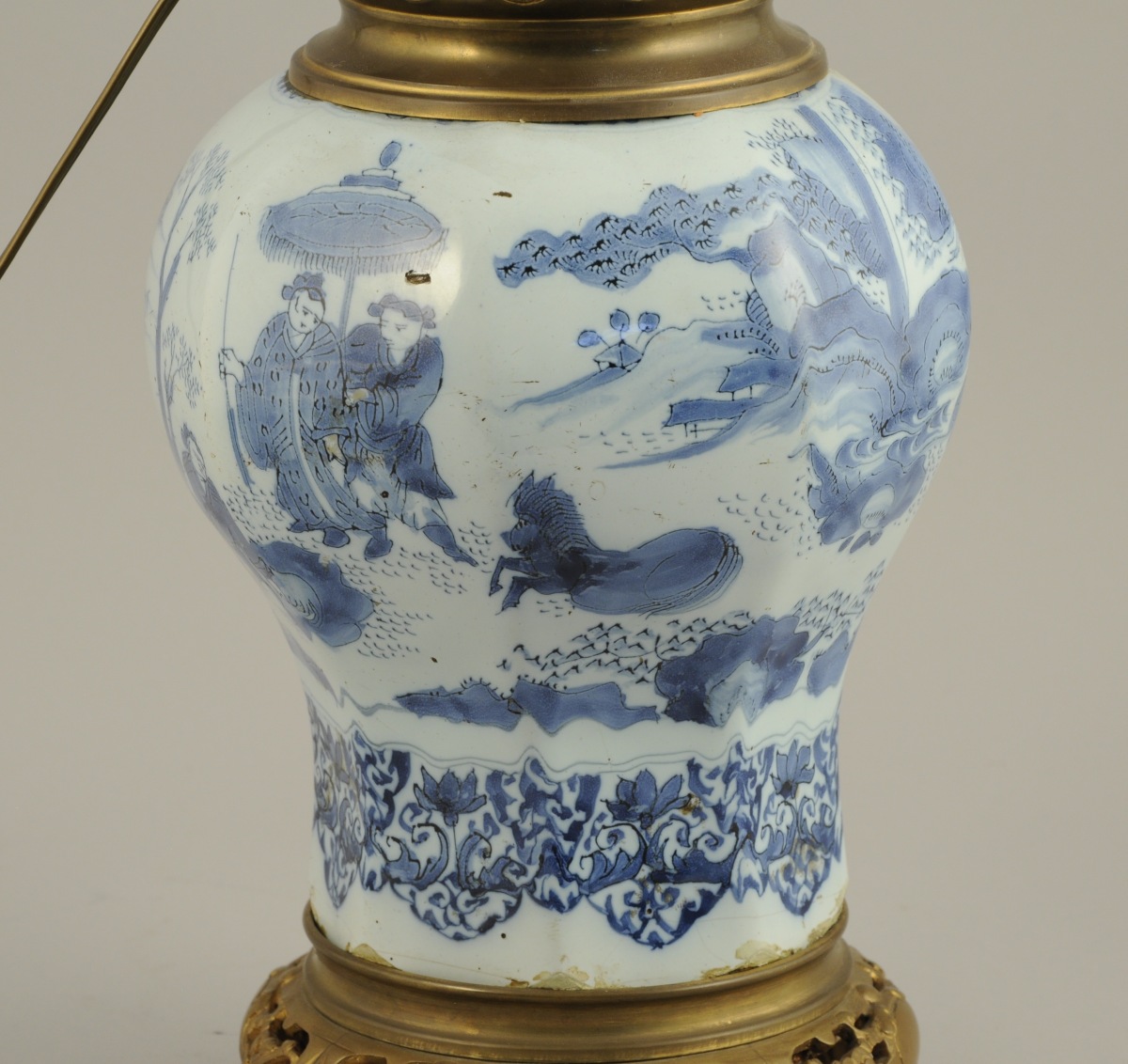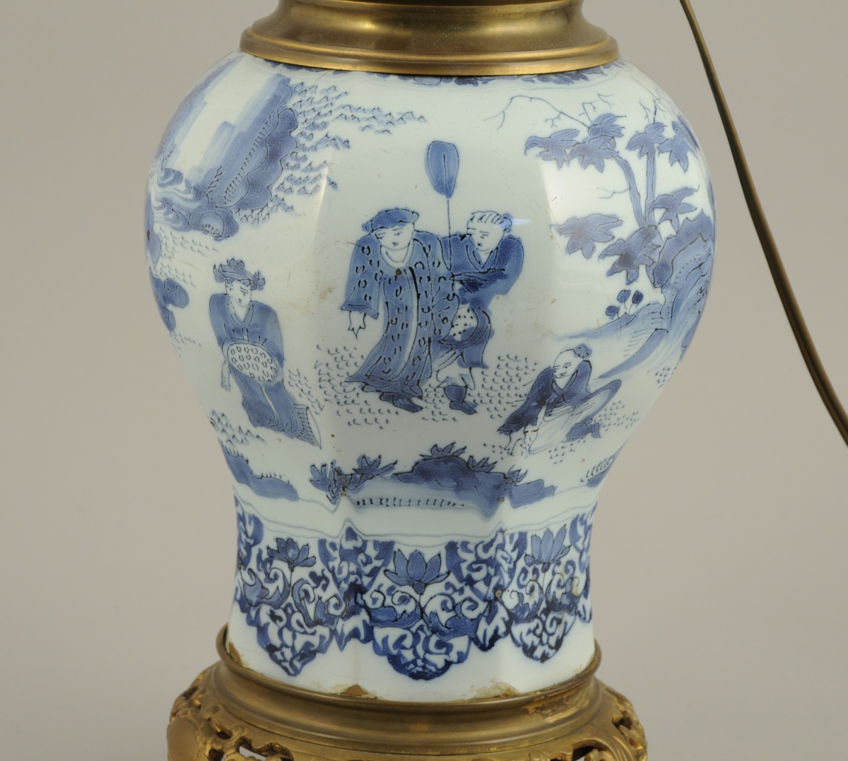 VASE à pans coupés en porcelaine à décor en bleu. Monture de bronze doré.