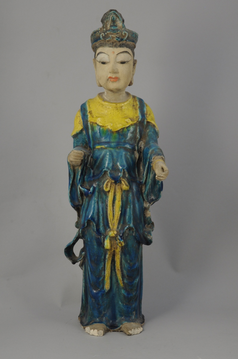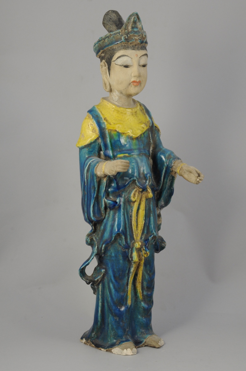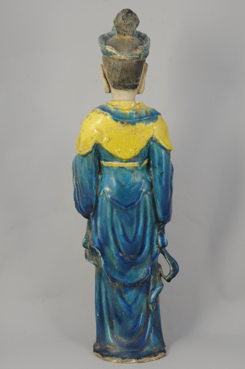 STATUETTE de DIGNITAIRE CHINOIS, en céramique émaillée polychrome.