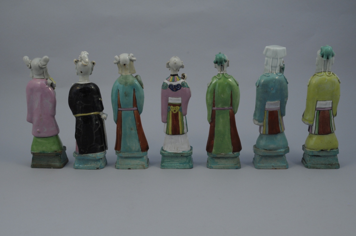SEPT STATUETTES en porcelaine aux émaux de la famille rose...
