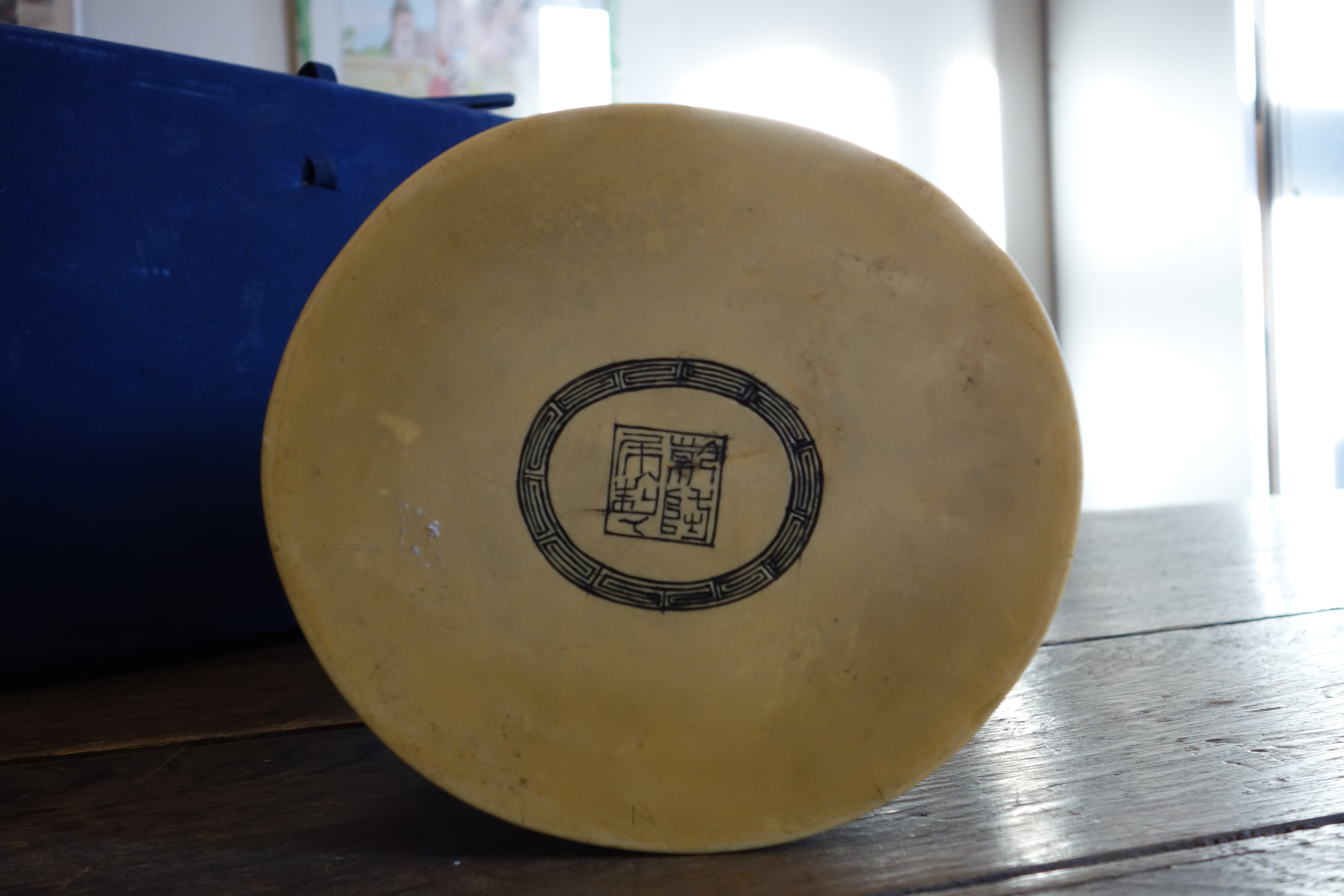 Sur un SOCLE plaqué d'ivoire en forme de toit de pagode reposant sur huits pieds.