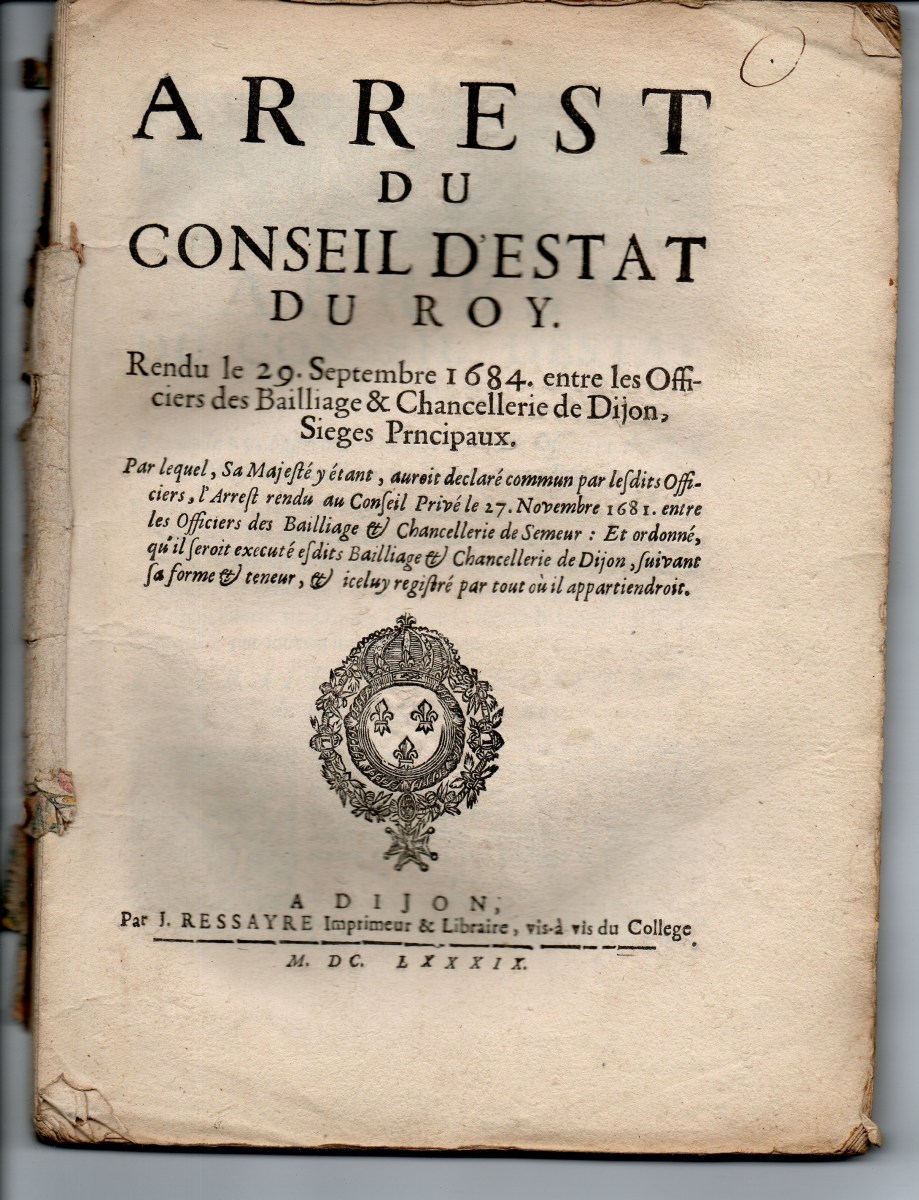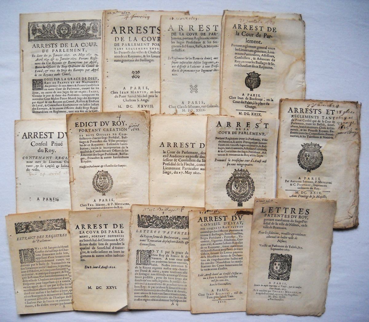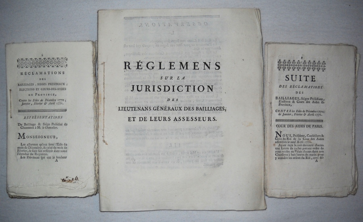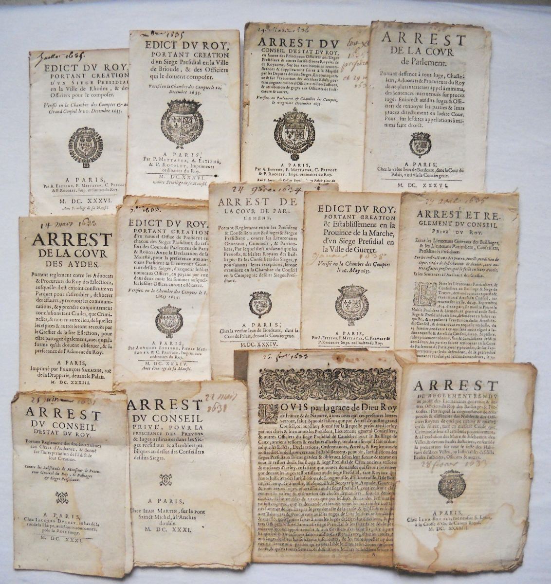 [JUSTICE - TRIBUNAUX] - Lettres patentes, édits, déclarations, ordonnances, arrêts du conseil d'état du roi, arrêts de la cour de parlement, arrêts de la chambre de justice et divers, relatifs aux circonscriptions judicaires (bailliages, présidiaux, sénéchaussées, vicomtés, vigueries) et à la chambre de justice.