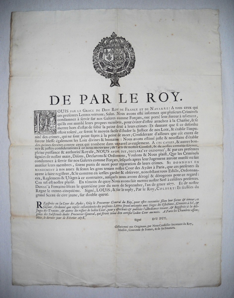 ![Lot 18 - [JUSTICE - MATIERES CRIMINELLES] - Lettres patentes, édits, déclarations, ordonnances,... [JUSTICE - MATIERES CRIMINELLES] - Lettres patentes, édits, déclarations, ordonnances,...](<150:ddoc-444009-42f1b565deee578932ee49272802edb7-21_7.jpg, <480:ddoc-444010-1469b5dd2ebc15e37368fbbae4759a8c-21_7.jpg, <640:ddoc-444011-dd6226c9d9d988b54ccaf815c1c27c22-21_7.jpg, <900:ddoc-444012-06ac2e29295c80743cc0e6691596e6e9-21_7.jpg, >900:ddoc-444008-89ac621c54504fe56569c7d2691a80e9-21_7.jpg)