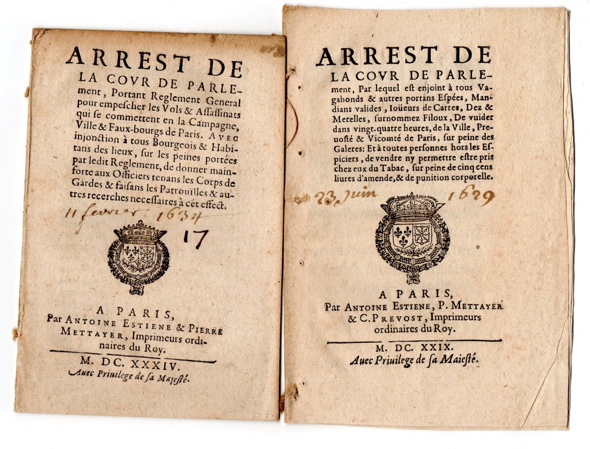 Env. 300 pièces imprimées, 1552-1786, tous formats, dont 37 pièces du règne de Louis XIII.