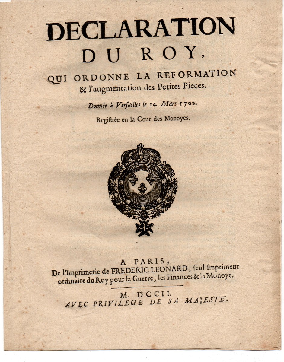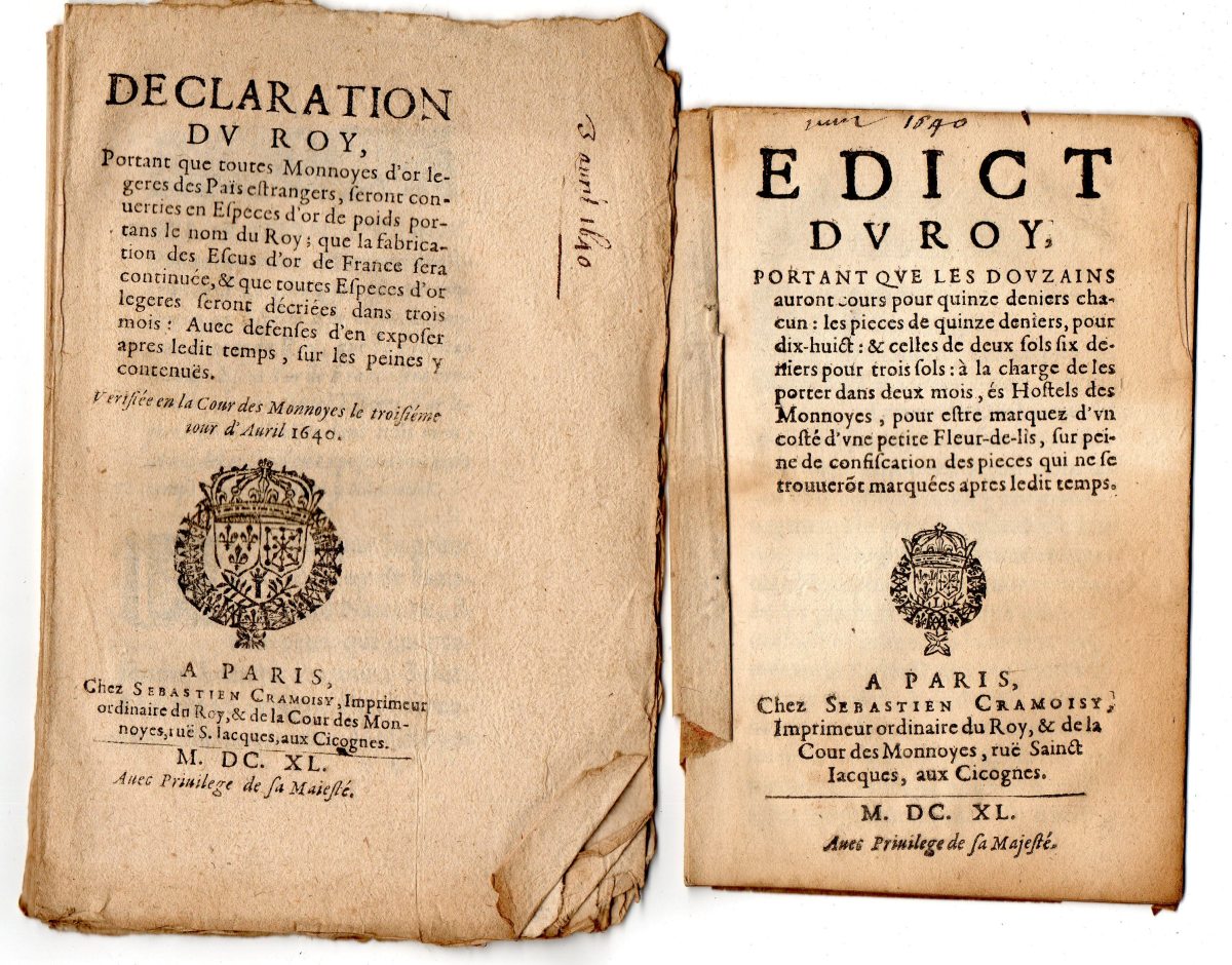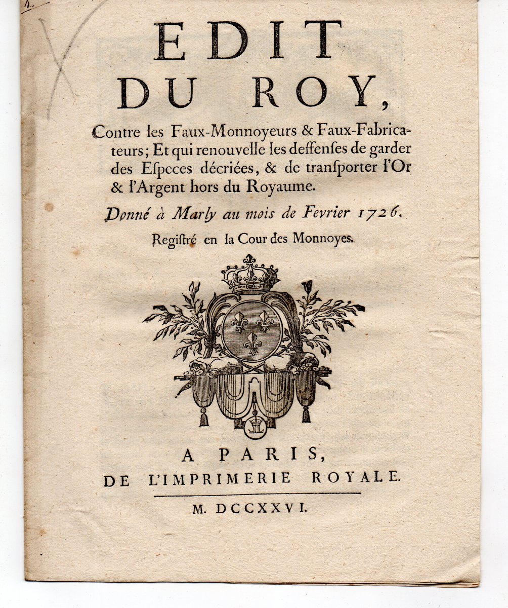 [MONNAIE] - Lettres patentes, édits, déclarations, ordonnances, arrêts du conseil...